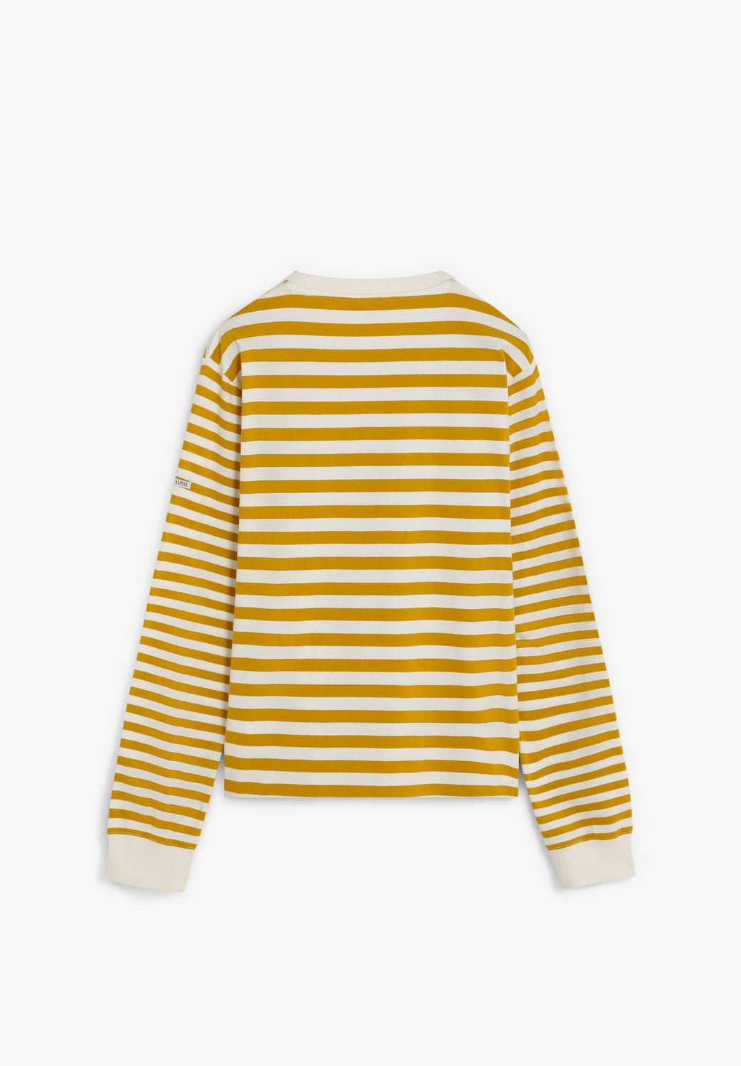 Camiseta con estampado de rayas. Confeccionada en 100% algodón BCI. Corte Regular Fit. Cuello redondo. Contraste en cuello y puños. Manga larga.