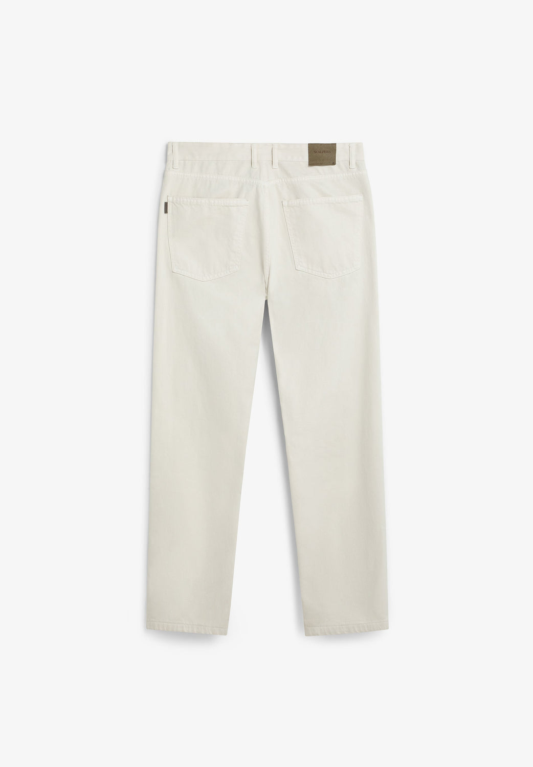 Straight trousers made of 100% cotton. Front and back pockets. Button and zip fastening. Belt loops at the waist. Logo label details on the belt and pocket.