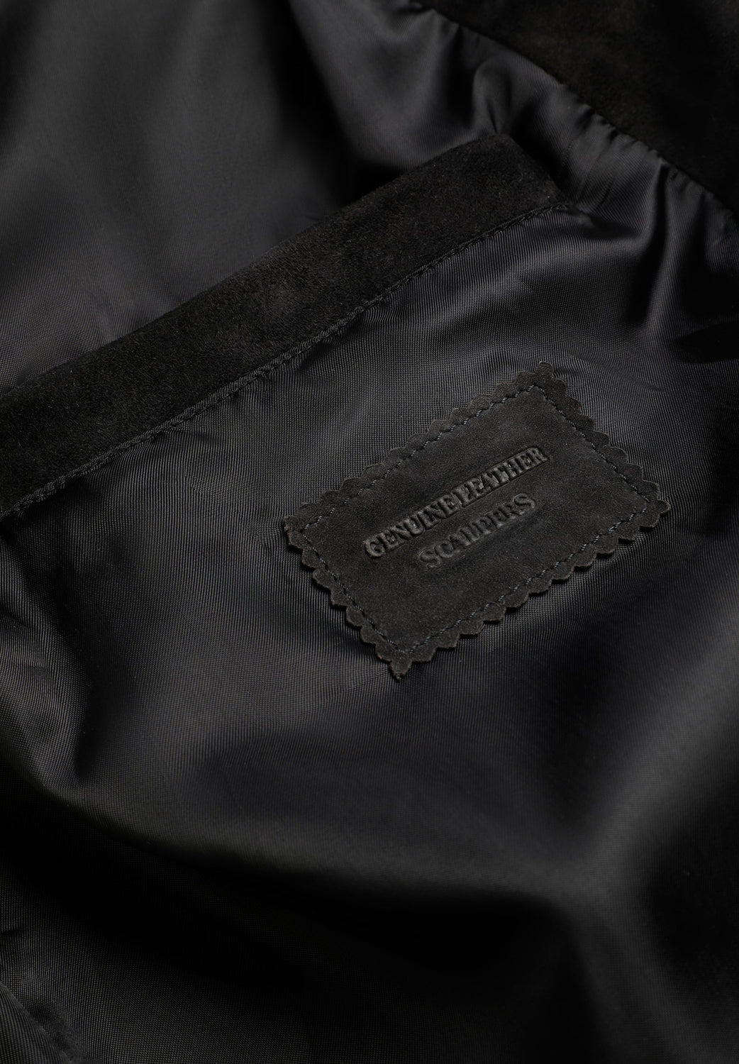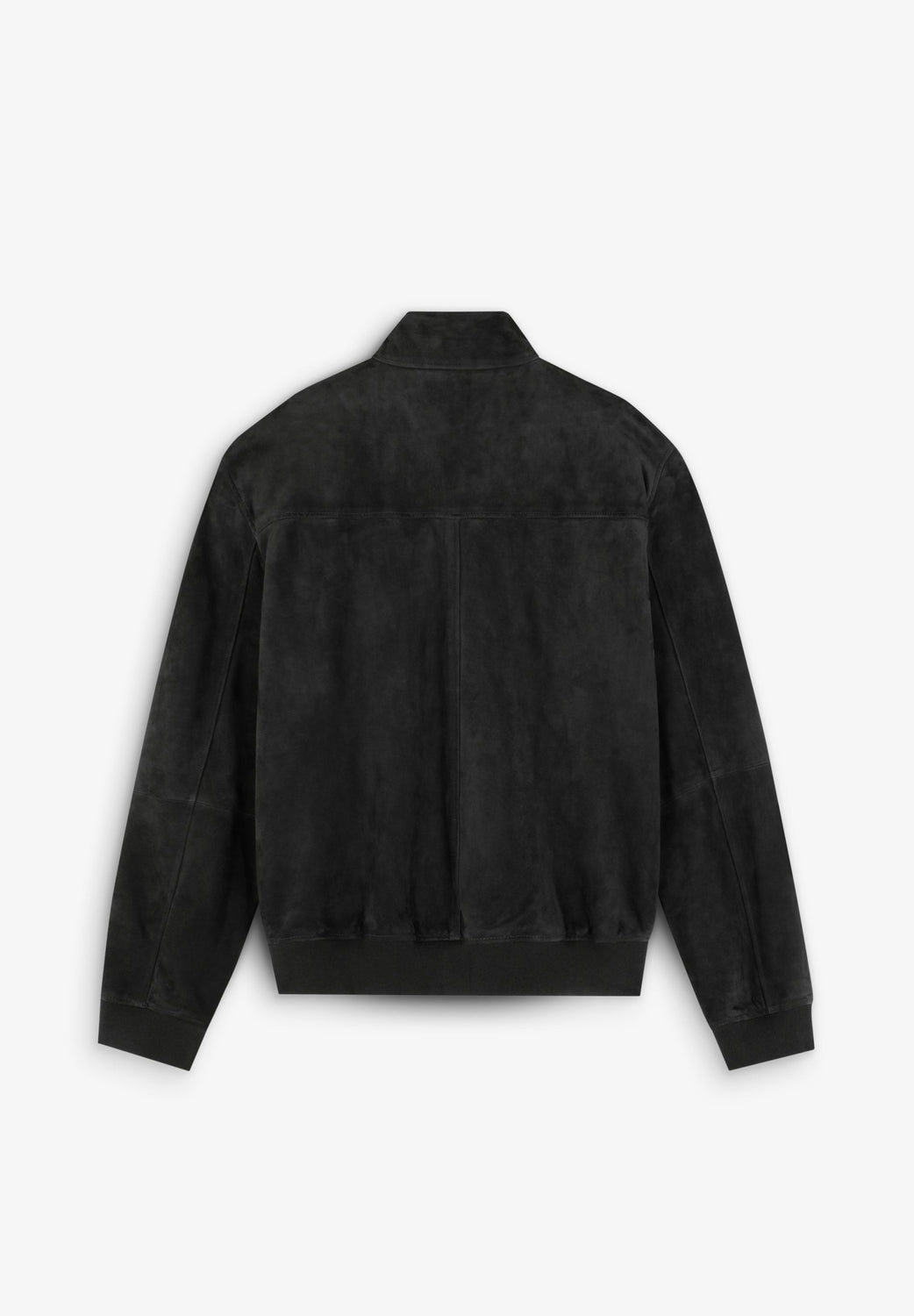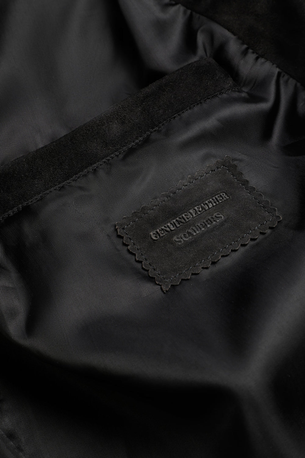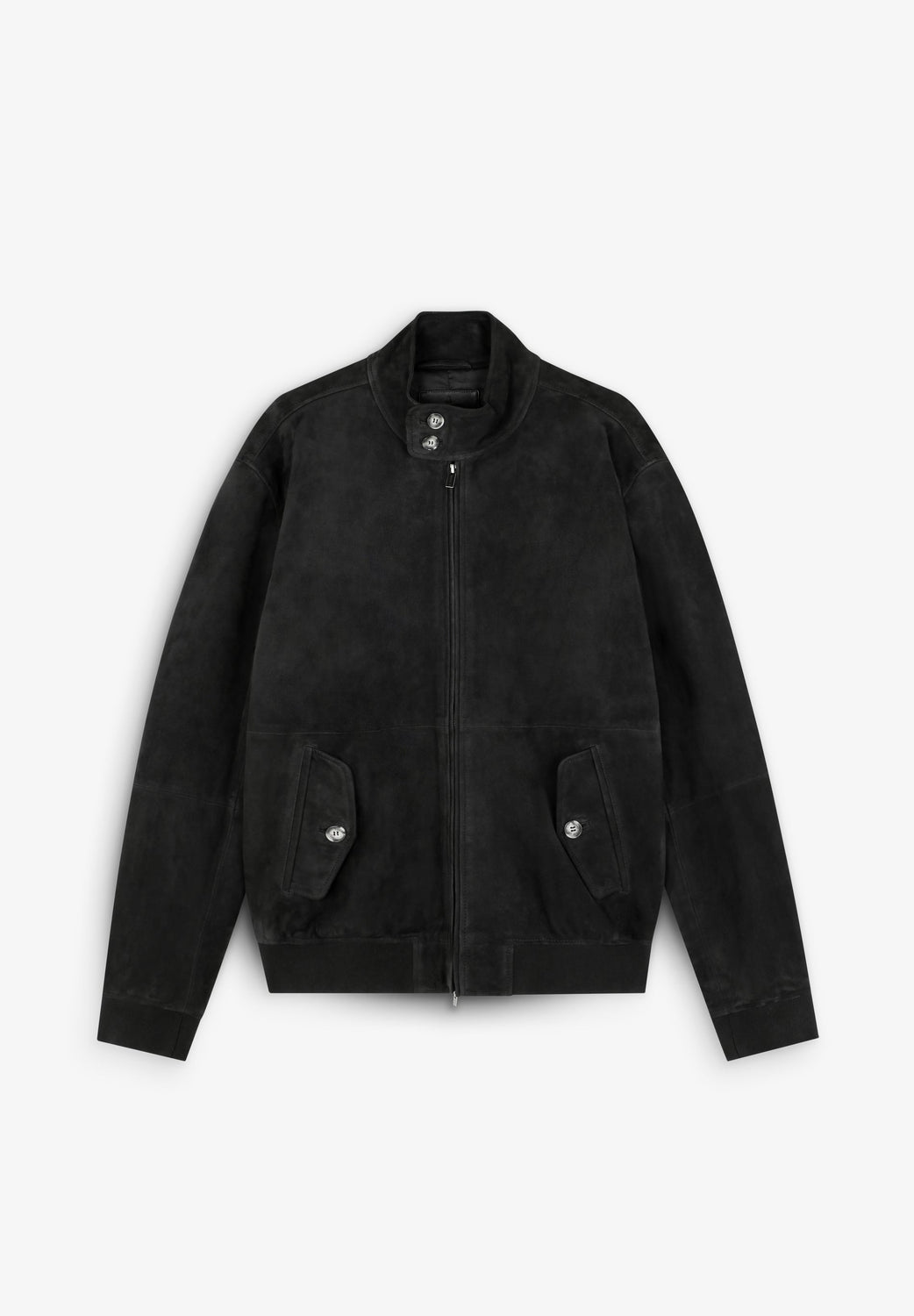 100% goatskin jacket. Fitted. Two-way zip. Ribbed collar, cuffs and waistband. Two front pockets with button fastening. Two button fastening collar.