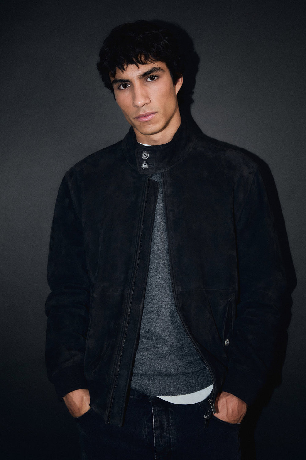 Jacket made of 100% goatskin. Double slider zip. Ribbed cuffs and waist. Two side pockets with button fastening. Two button fastening collar.