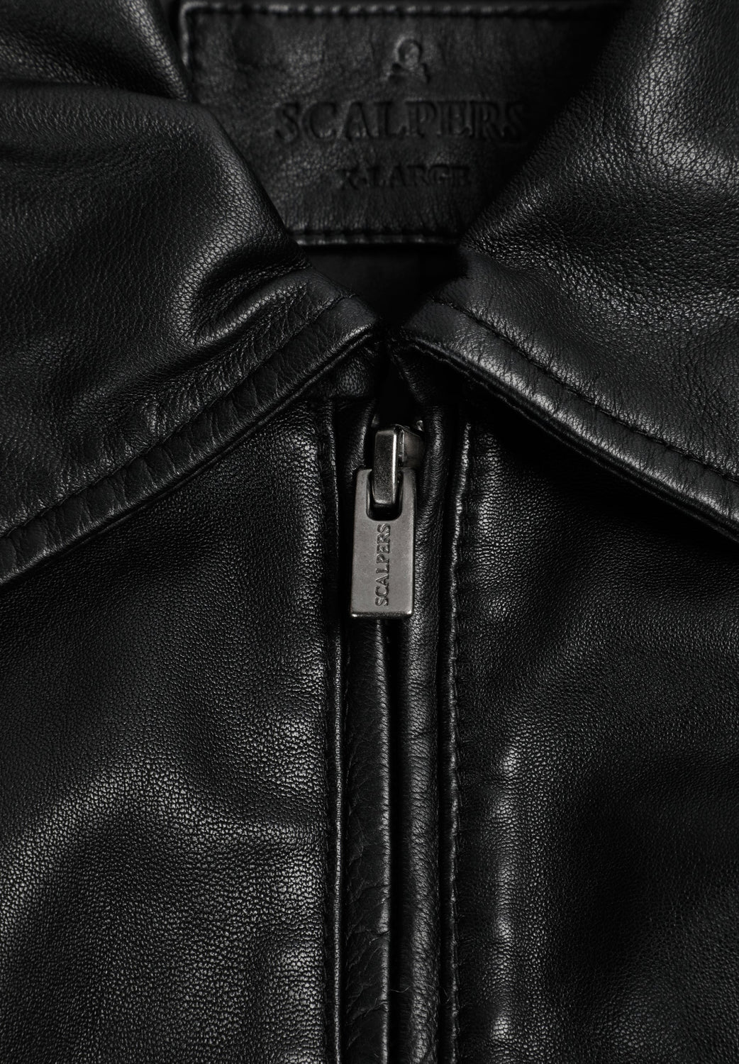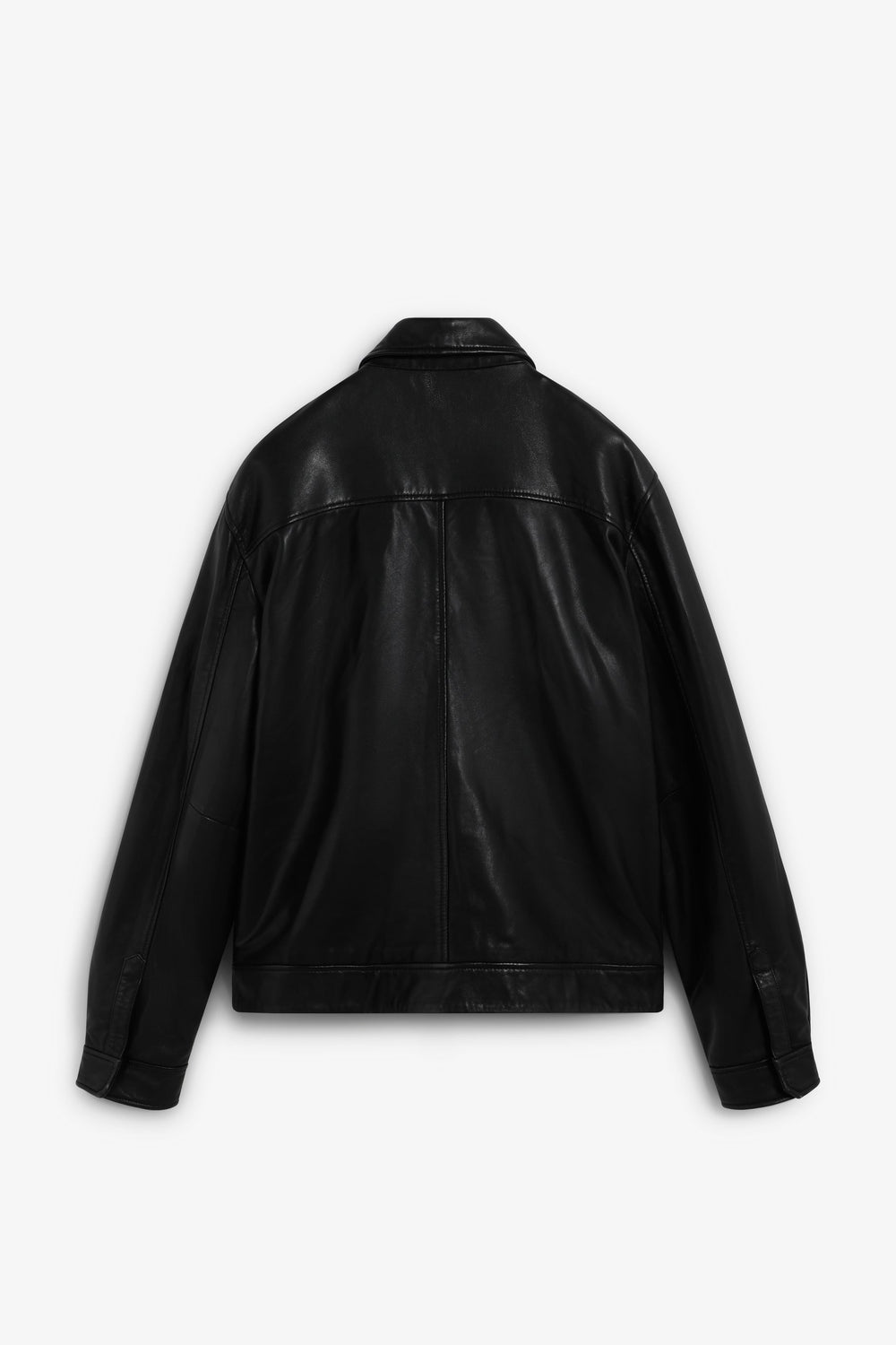 Jacket made of 100% leather. Shirt collar. Long sleeves. Double zip fastening. Two front pockets. Buttoned cuffs. Embroidered logo and skull details on the inside.