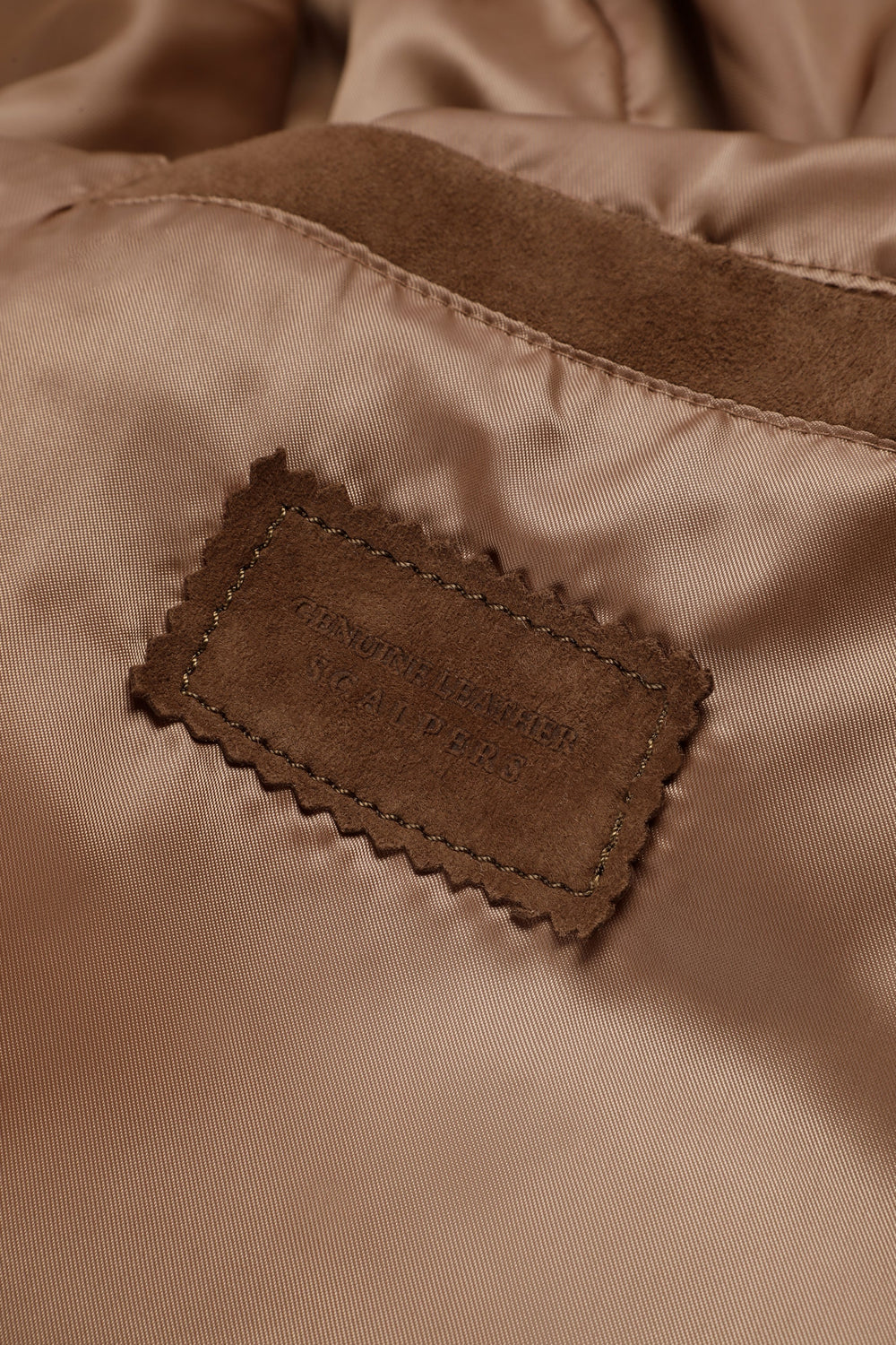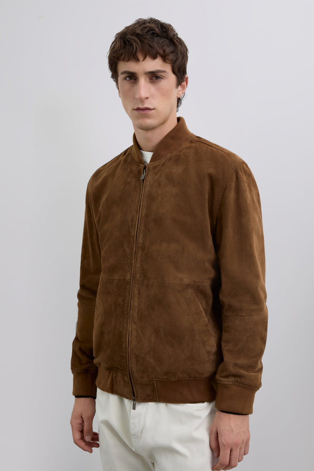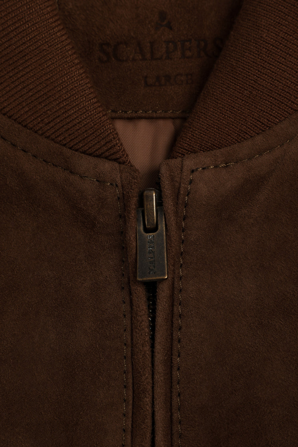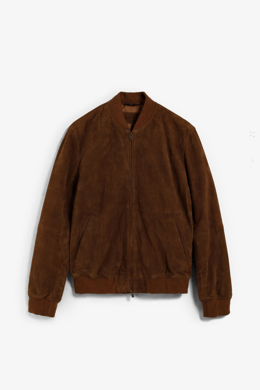 Bomber jacket made of 100% leather. Long sleeves. Ribbed trim on collar, cuffs and waistband. Front double slider zip fastening. Two front slant pockets. Embroidered details on logo label and skull on the inside.