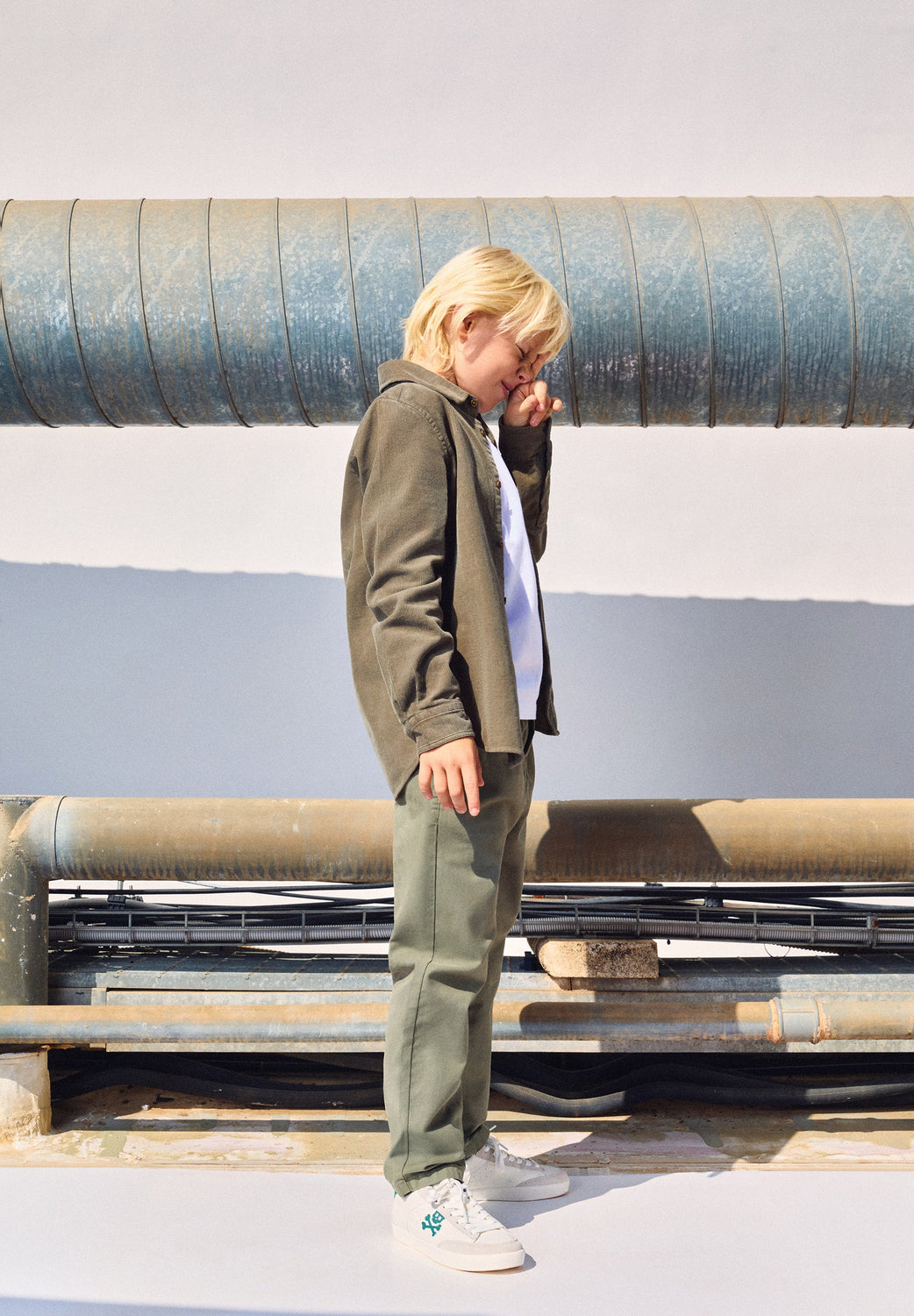 Corduroy shirt made of 100% BCI cotton. Regular Fit. Button fastening. Long sleeves with buttoned cuffs. Matching embroidered skull on the chest.