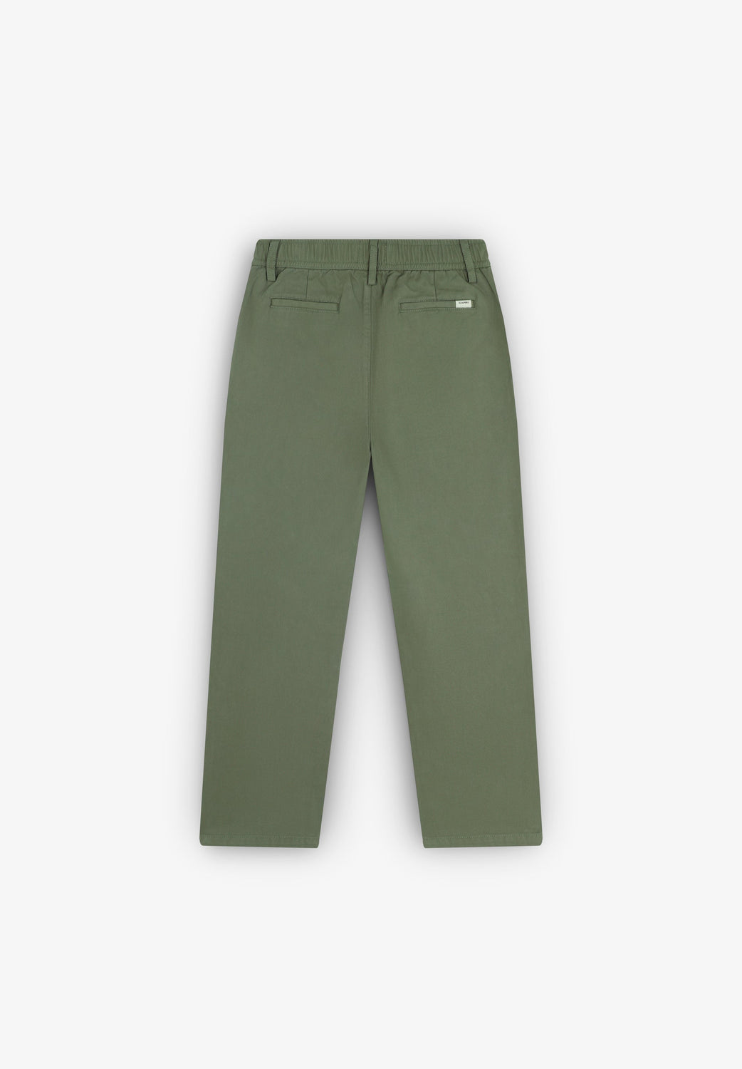 Chino trousers made of 100% BCI cotton. Two front and back pockets. Button fastening and belt loops. Logo label detail on the pocket.