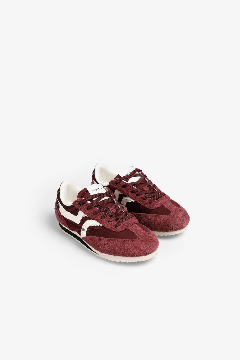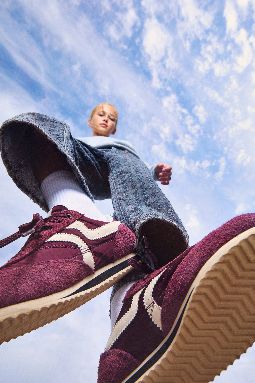 Retro style sneakers made of suede. Matching lace-up fastening. EVA and TPR sole Contrast logo label detail on tongue and side and tonal embroidered skull on heel.