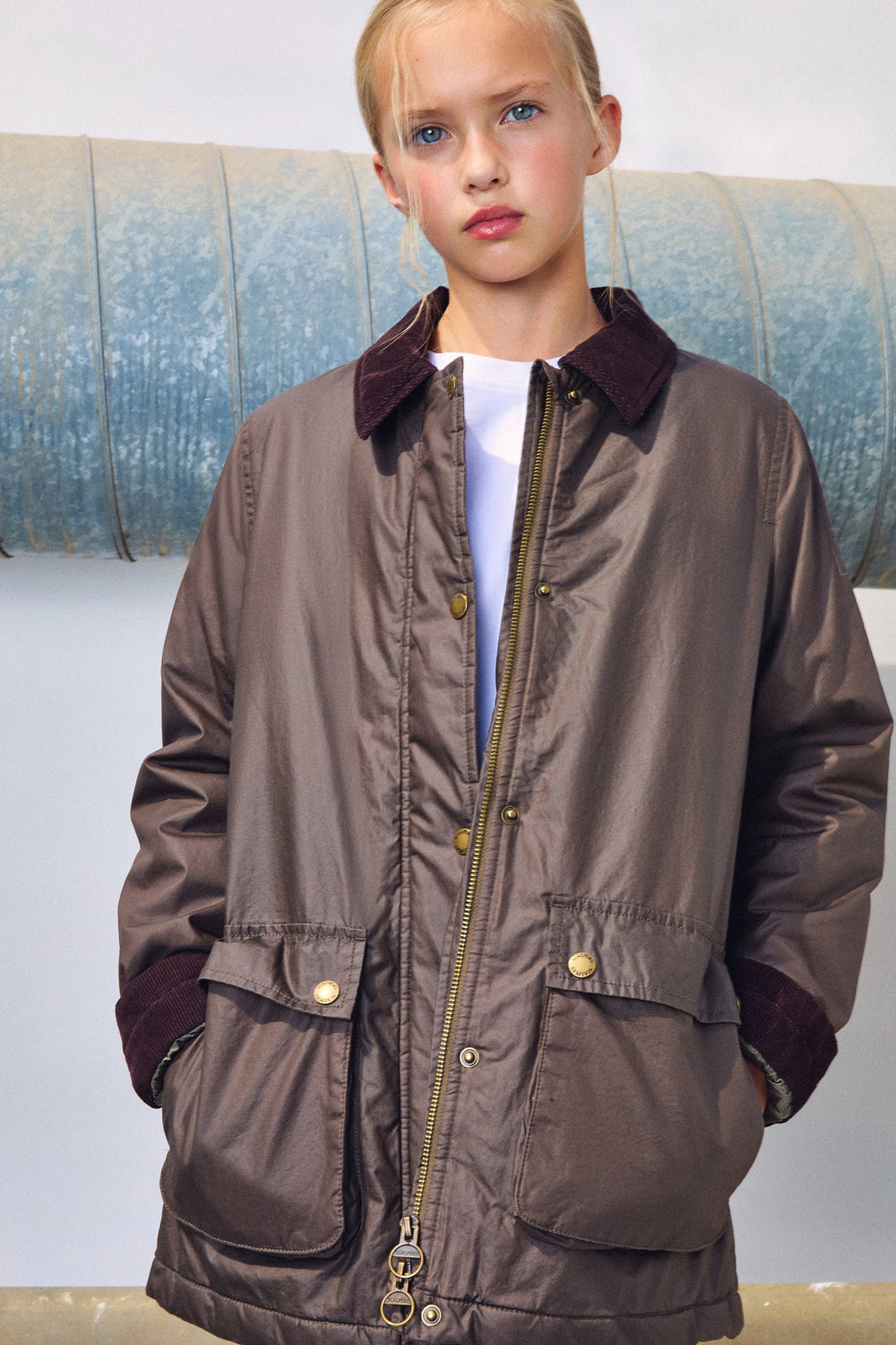 Jacket made of 100% BCI cotton. Contrast shirt collar. Long sleeves. Two front pockets with buttoned flap. Front button fastening. Logo print detail on sleeve.