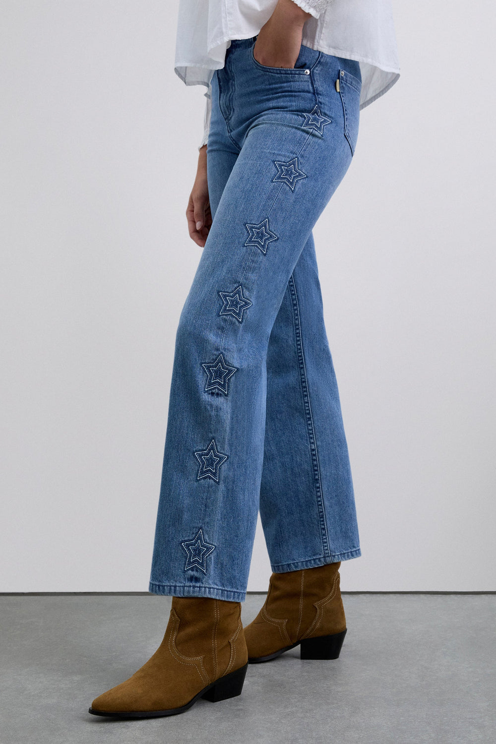 WIDE LEG TROUSERS WITH EMBROIDERED STARS