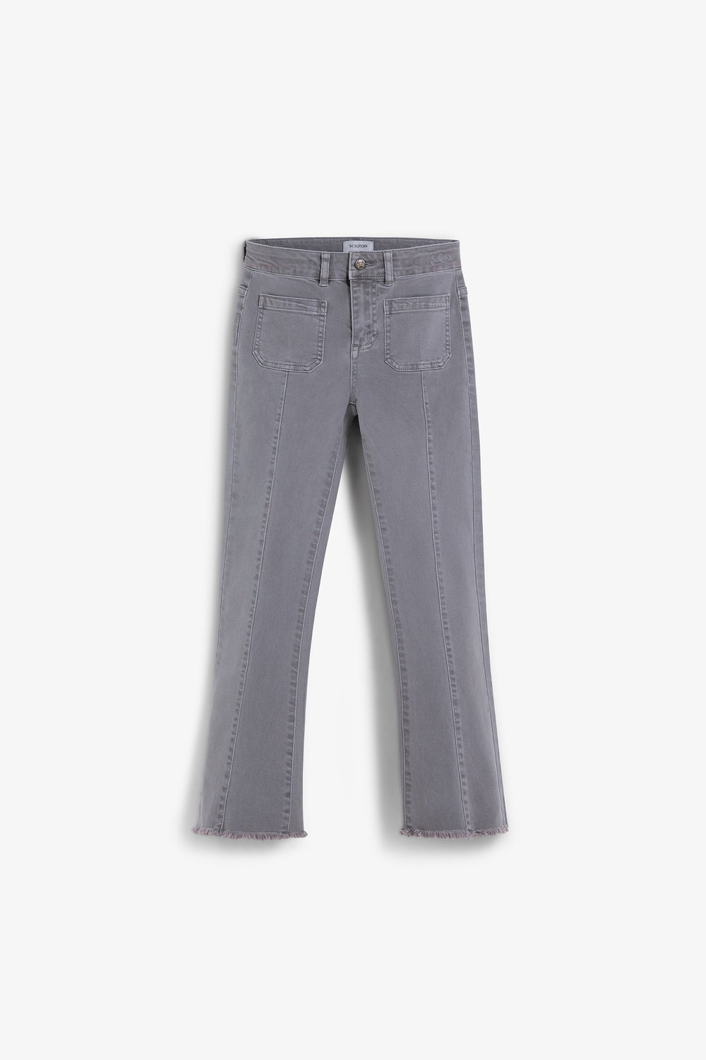 Flared trousers made of BCI cotton. Button and zip fastening. Belt loops at the waist. Front and back pockets. Seam detail on the front. Side slit and frayed hems.