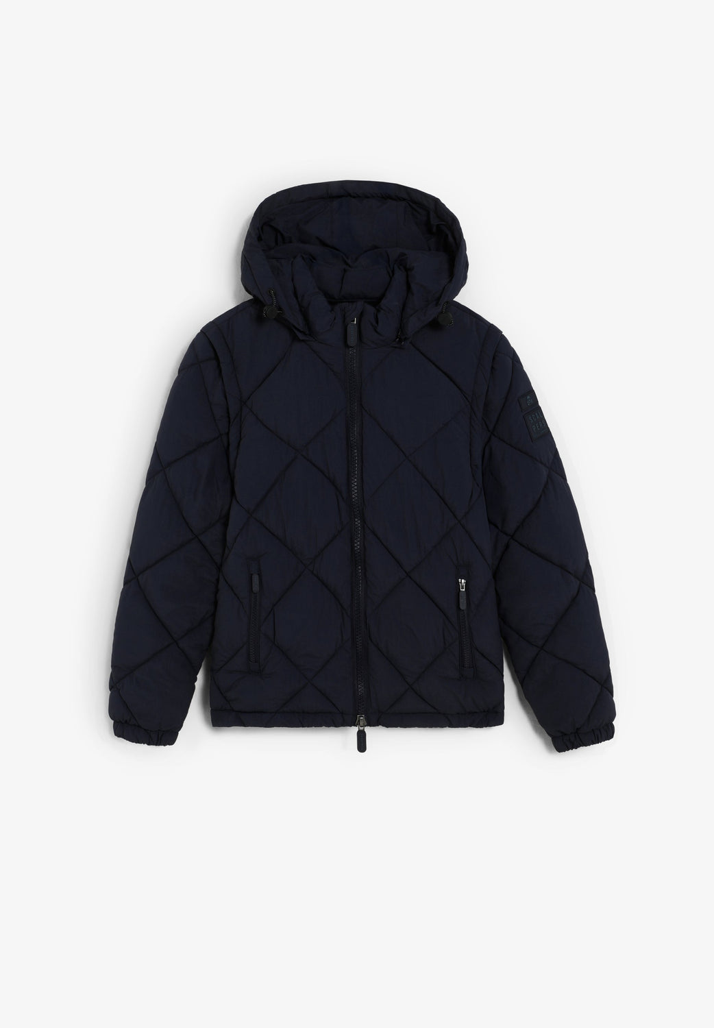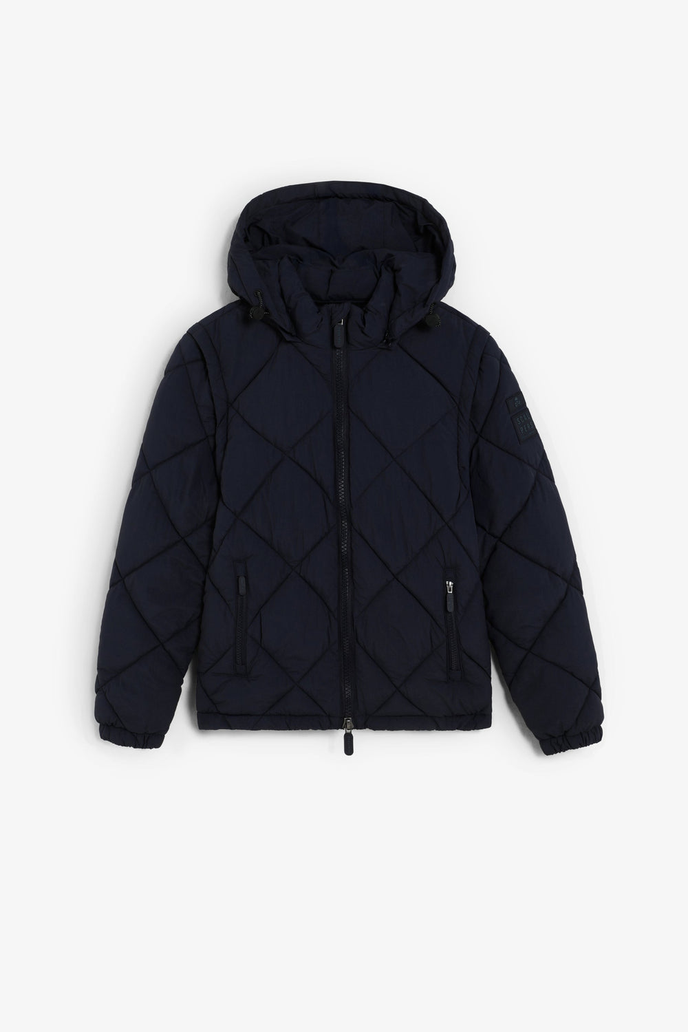Cazadora con capucha y manga larga desmontable. Cierre mediante cremallera. Logotipo engomado en manga. Bolsillo en frontal. Detalle de logotipo en cuello.