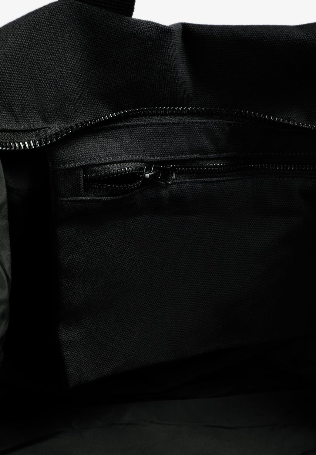 Bag made of 100% cotton. Short double handle. Long detachable strap. Contrast skull print and logo on front. Zip closure.
