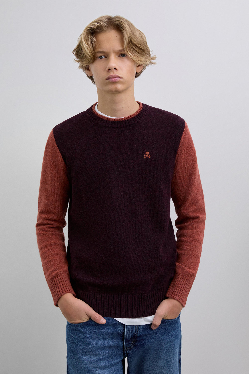 Jersey de punto. Cuello redondo y mangas largas a contraste. Detalle de logotipo bordado a contraste en pecho.