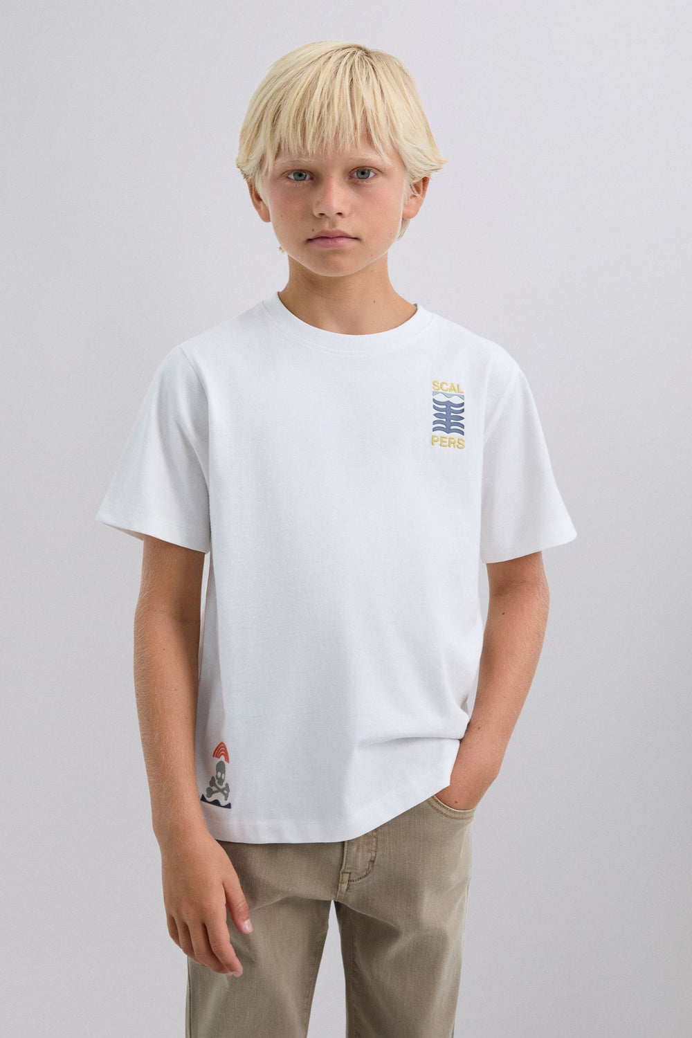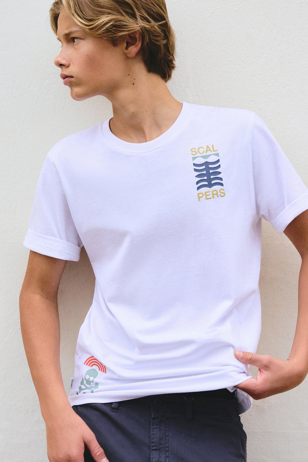 Camiseta confeccionada en 100% algodón BCI. Regular fit, manga corta y cuello redondo. Print delantero y lado inferior derecho a contraste con logo bordado.