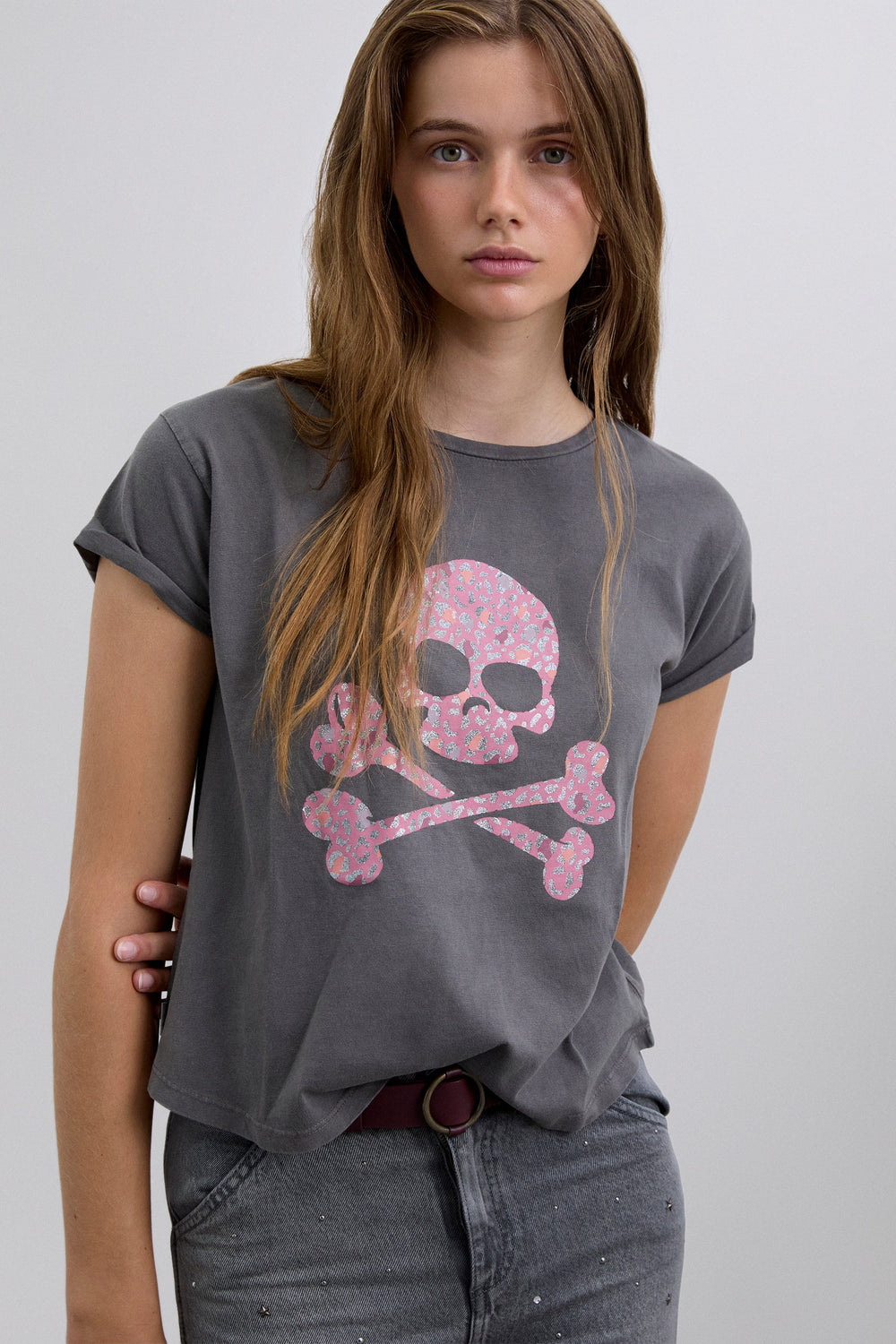 T-shirt made of 100% BCI cotton. Regular fit, round neck and short sleeves. Contrast front skull print on the chest.