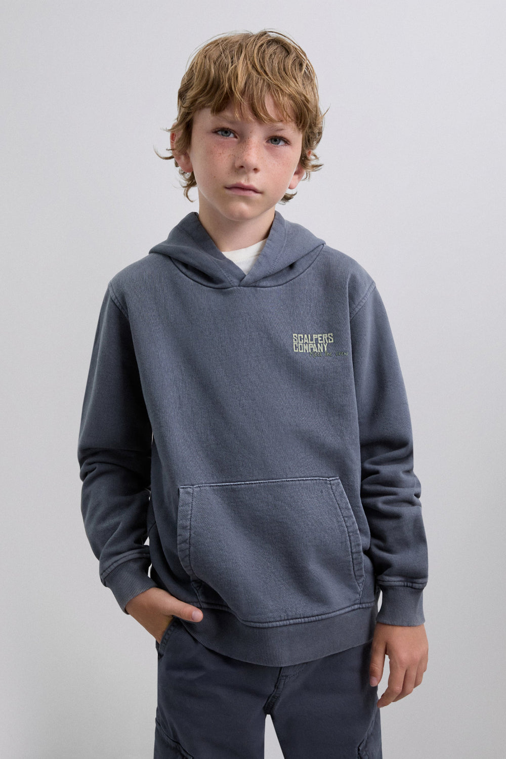 Sudadera con capucha confeccionada en 100% algodón BCI. Print en pecho y espalda. Manga larga con acabados en rib. Bolsillos tipo canguro en frontal. Detalle etiqueta calavera en cintura.