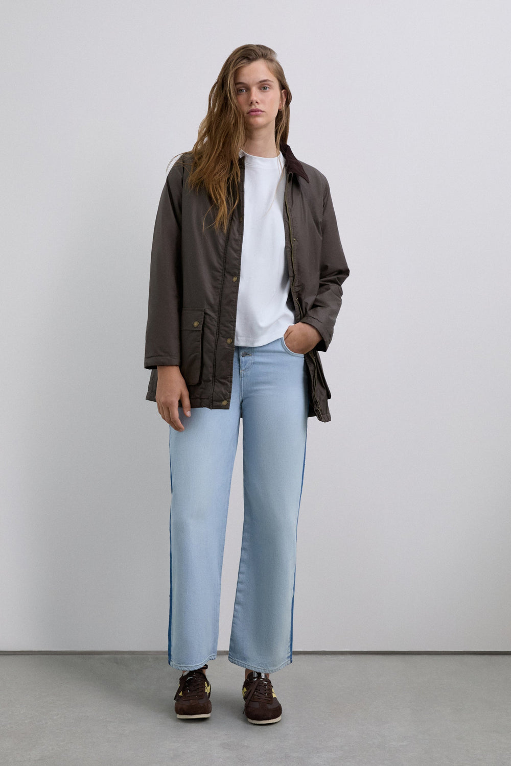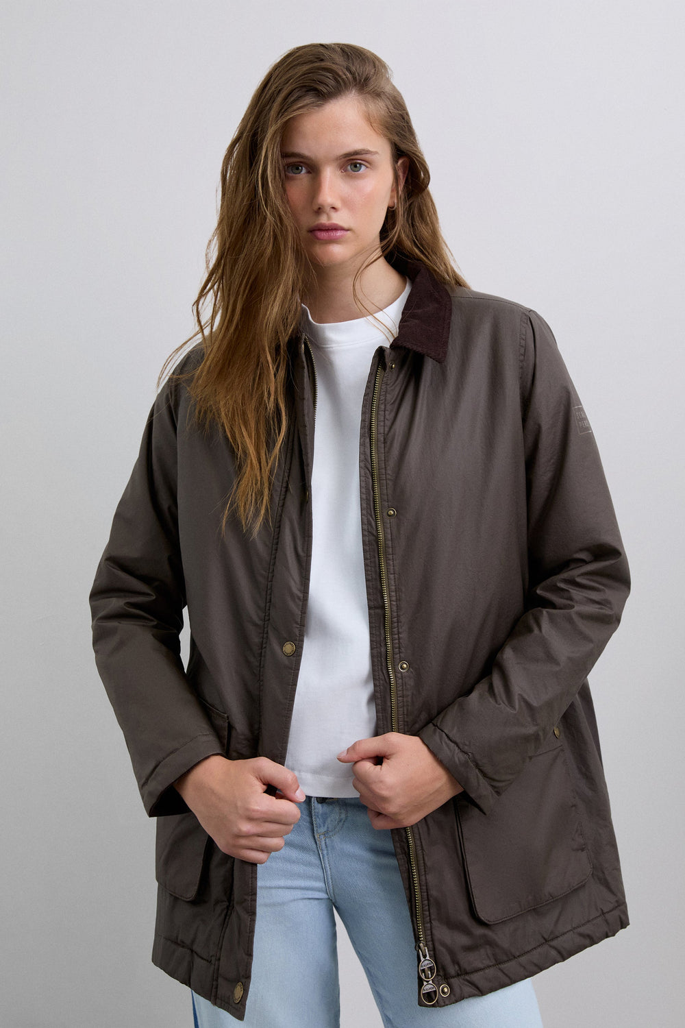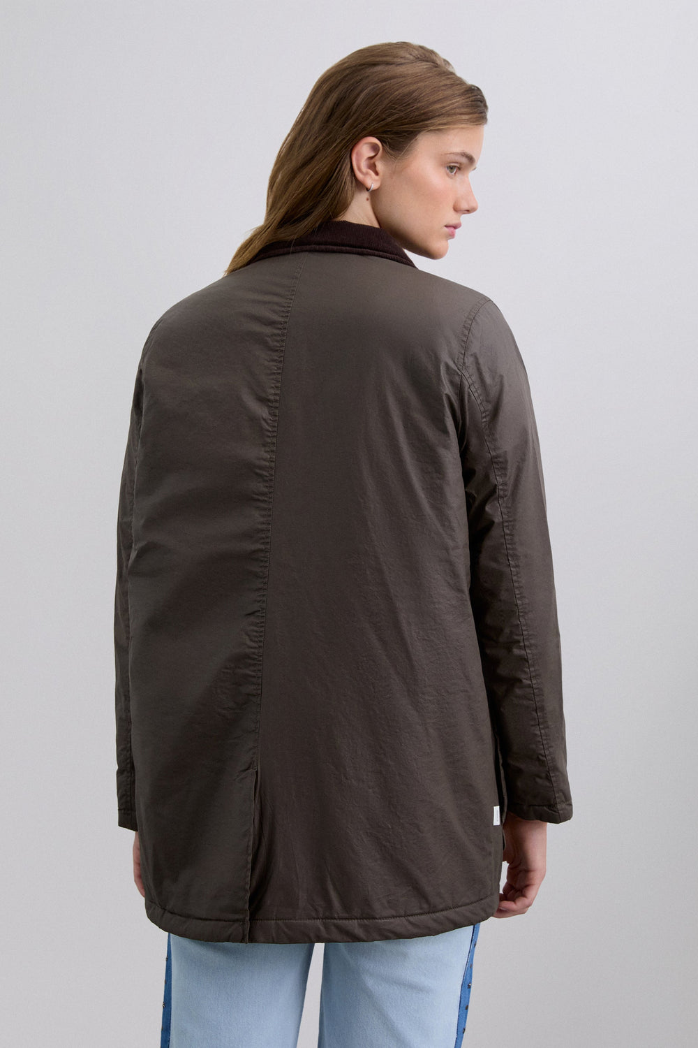 Jacket made of 100% BCI cotton. Contrast shirt collar. Long sleeves. Two front pockets with buttoned flap. Front button fastening. Logo print detail on sleeve.