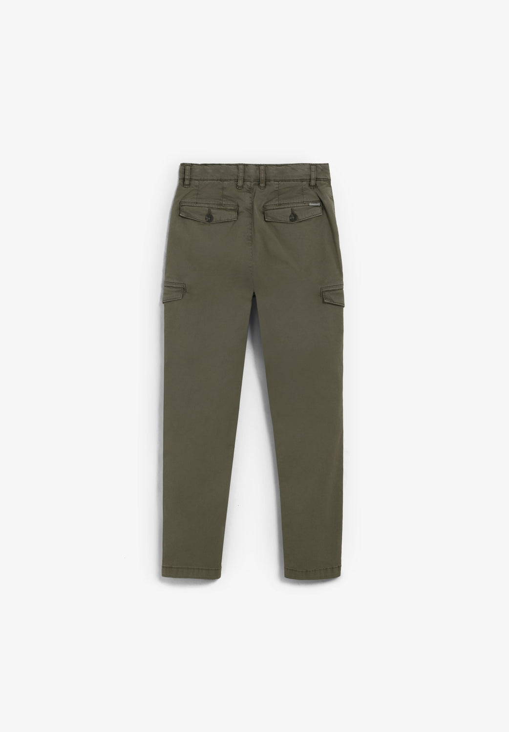 Cargo trousers made of slightly stretch BCI cotton. Regular fit, top button and zip fastening and side pockets. Belt loops at the waist and flap pockets on the leg.