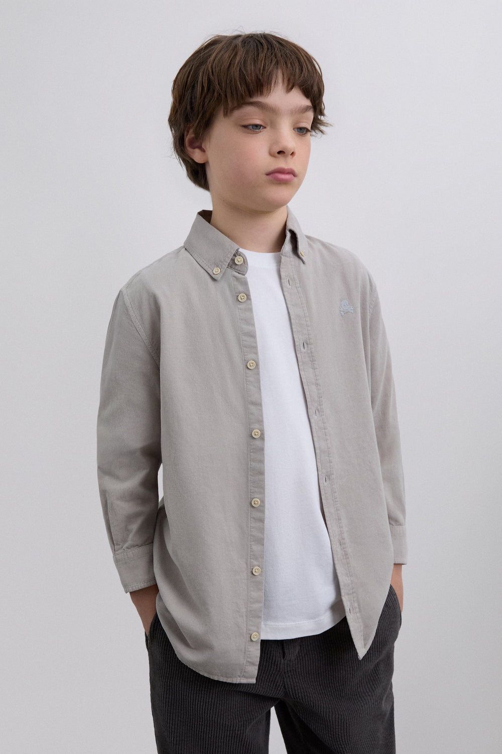 Oxford shirt made of 100% BCI cotton. Regular Fit. Classic collar and button fastening. Long sleeves with buttoned cuffs. Embroidered contrast skull on the chest. Detail of metallic lower front label with logo.