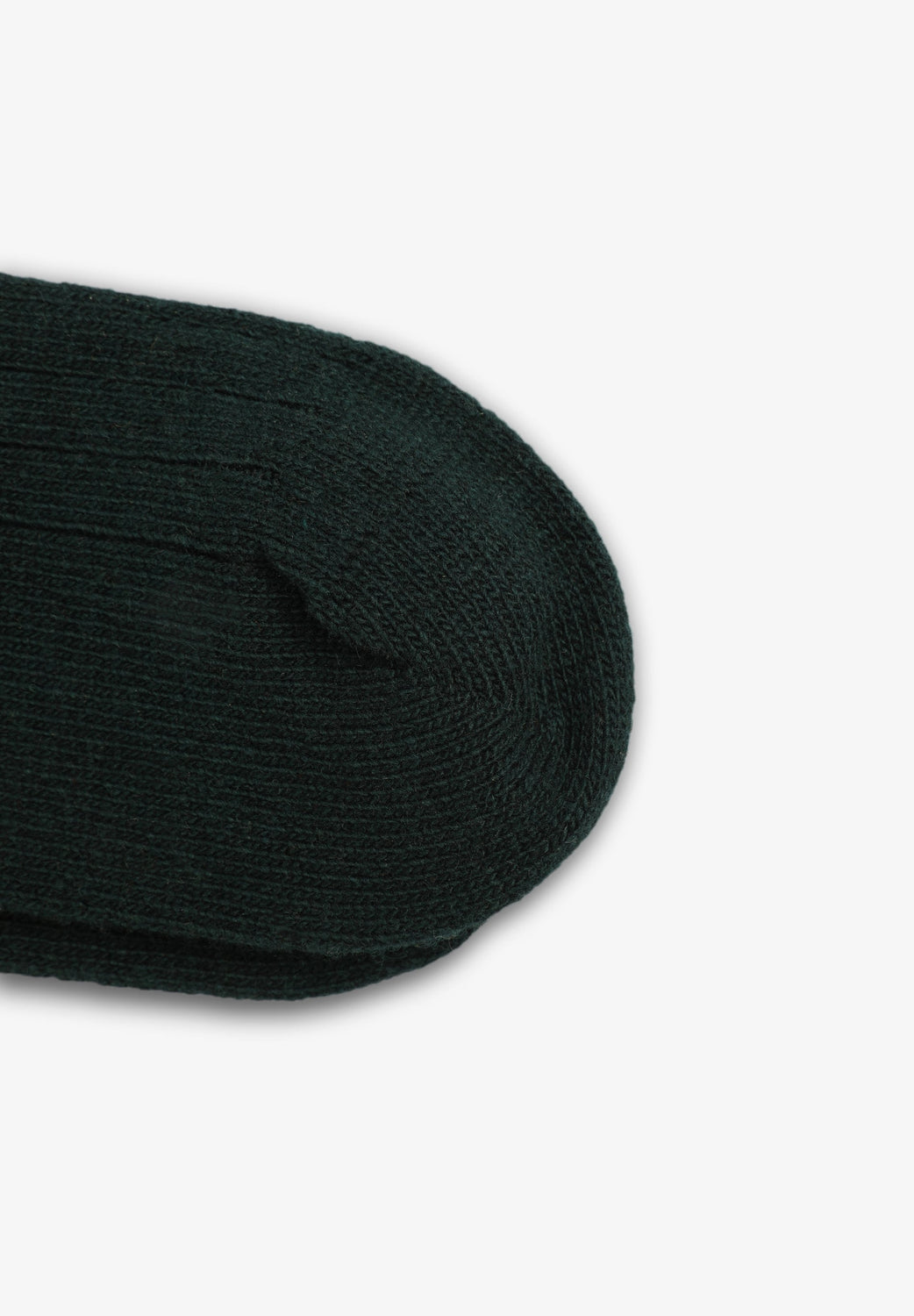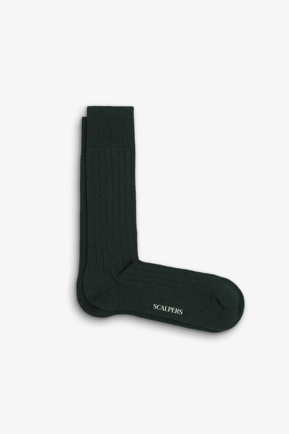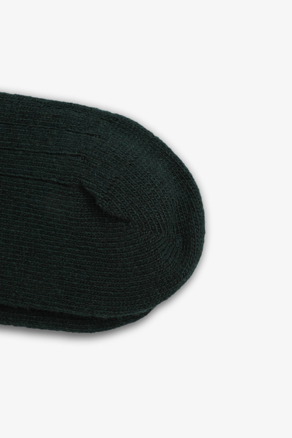 Calcetines confeccionados con tejido en mezcla de Cashmere y Lana. Logitud media. Ajuste cómodo. No aprieta el tobillo. Canalé fino. Detalle de logo en planta.
