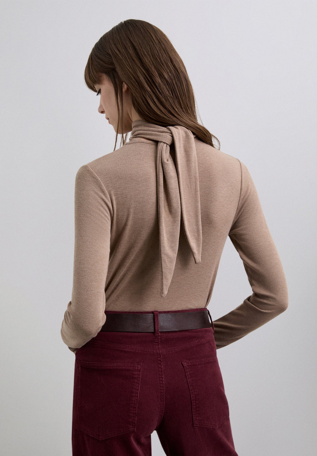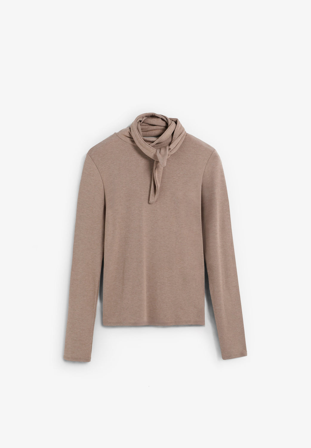 T-shirt with turn-down collar and scarf-style neck tie detail. Long sleeves. Slim fit.