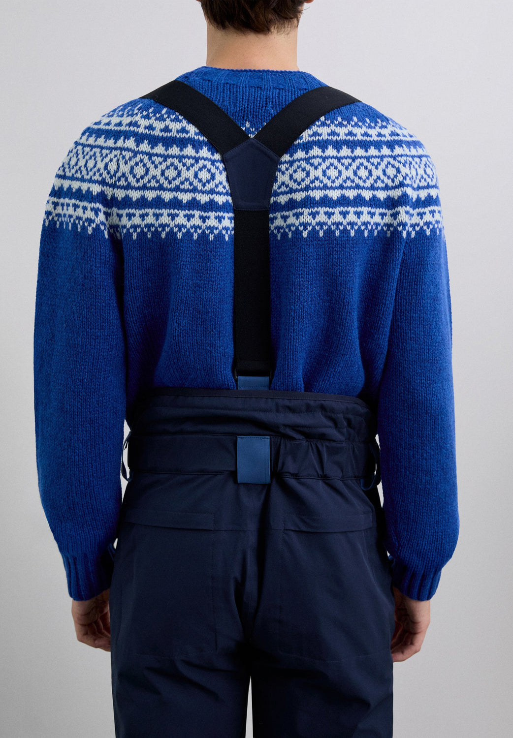 Ski trousers with braces made of technical fabric. Mid-rise with front zip fastening and adjustable waist with Velcro tabs. They feature adjustable elasticated braces and zipped side pockets. The hems are reinforced for added durability. Functional design with contrast panels and technical finishes.