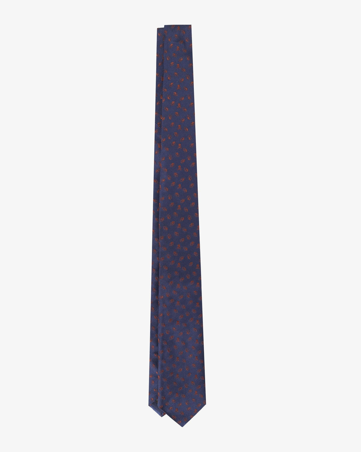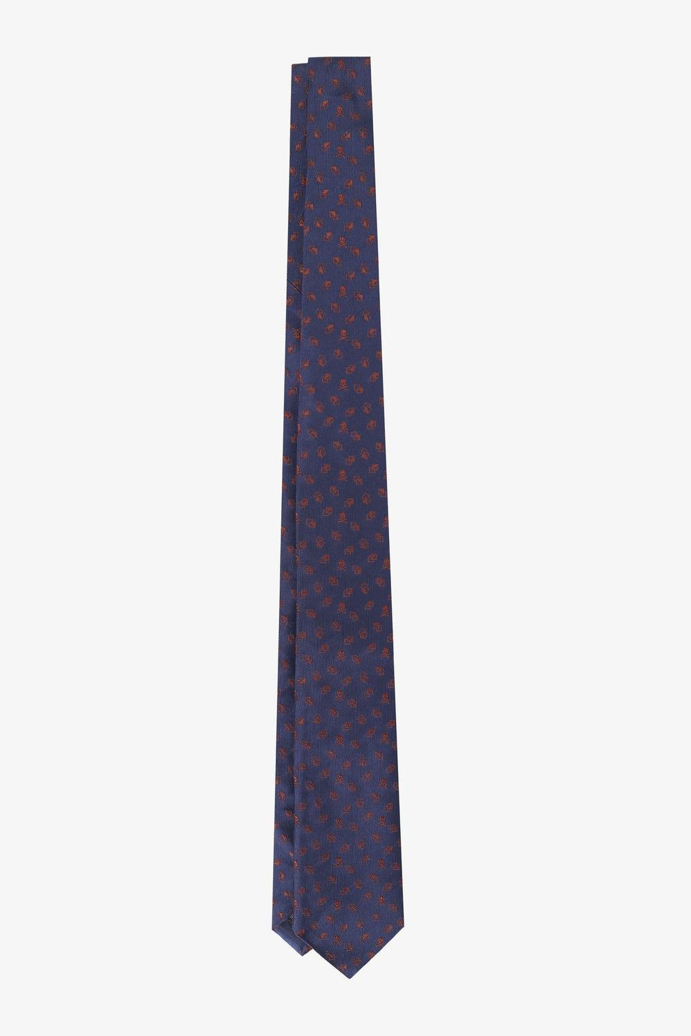 Corbata con motivo geométrico y de calaveras confeccionada en tejido 100% seda.