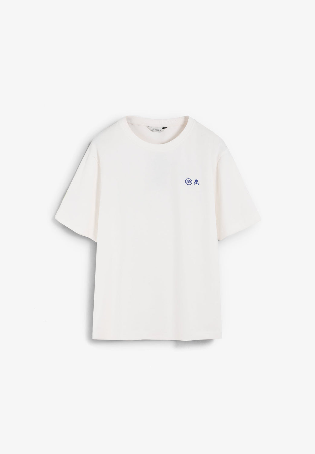 T-shirt made of 100% BCI cotton. Short sleeve. Round neck. Print on back. Tonal embroidery on the chest. Label detail on the right sleeve.