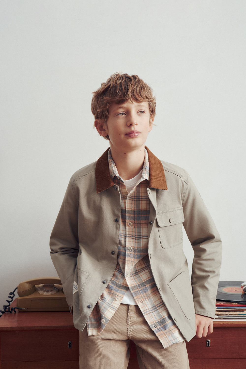 Jacket made of 100% BCI cotton. Contrast shirt collar. Long sleeves. Button and zip fastening. Front and chest pockets with button fastening. Logo label detail on the front pocket.