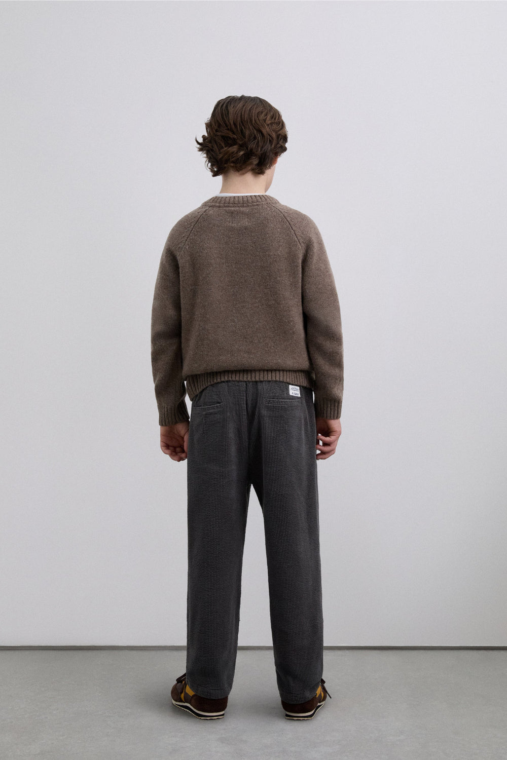 Straight corduroy trousers made of a slightly stretch cotton blend fabric Button closure. Front and back slanted pockets. Back label detail with logo.
