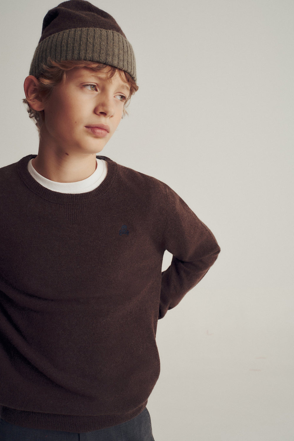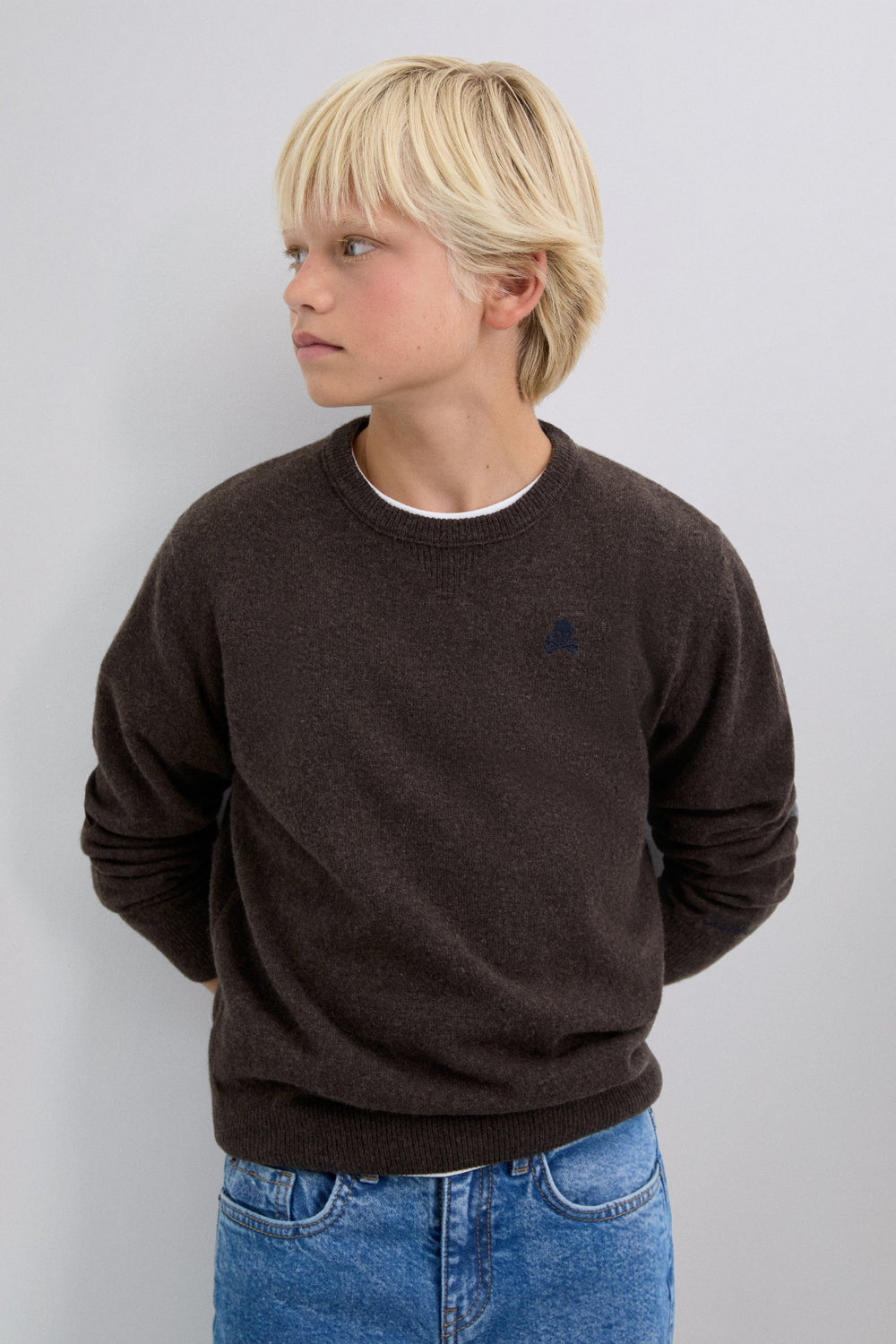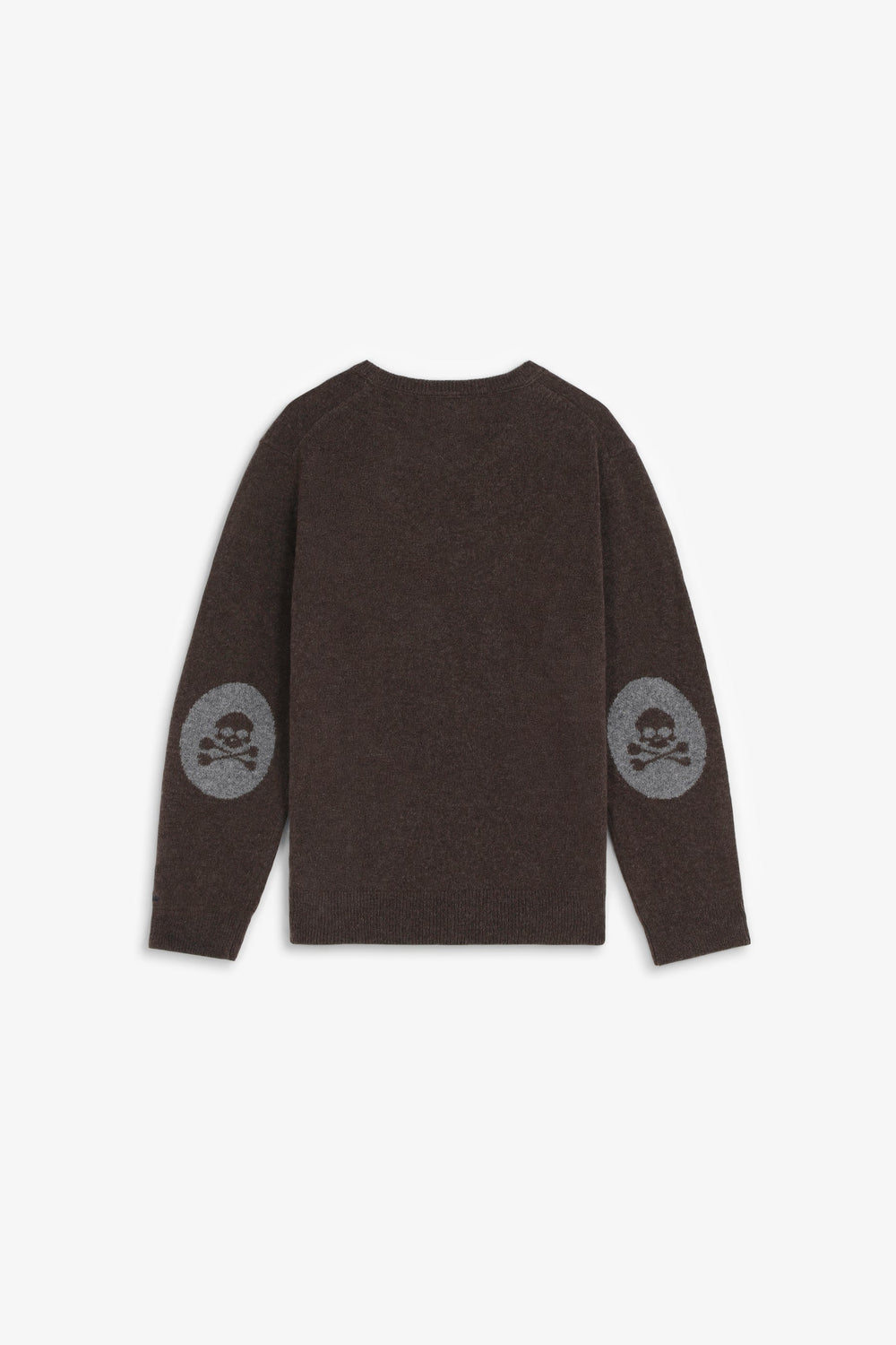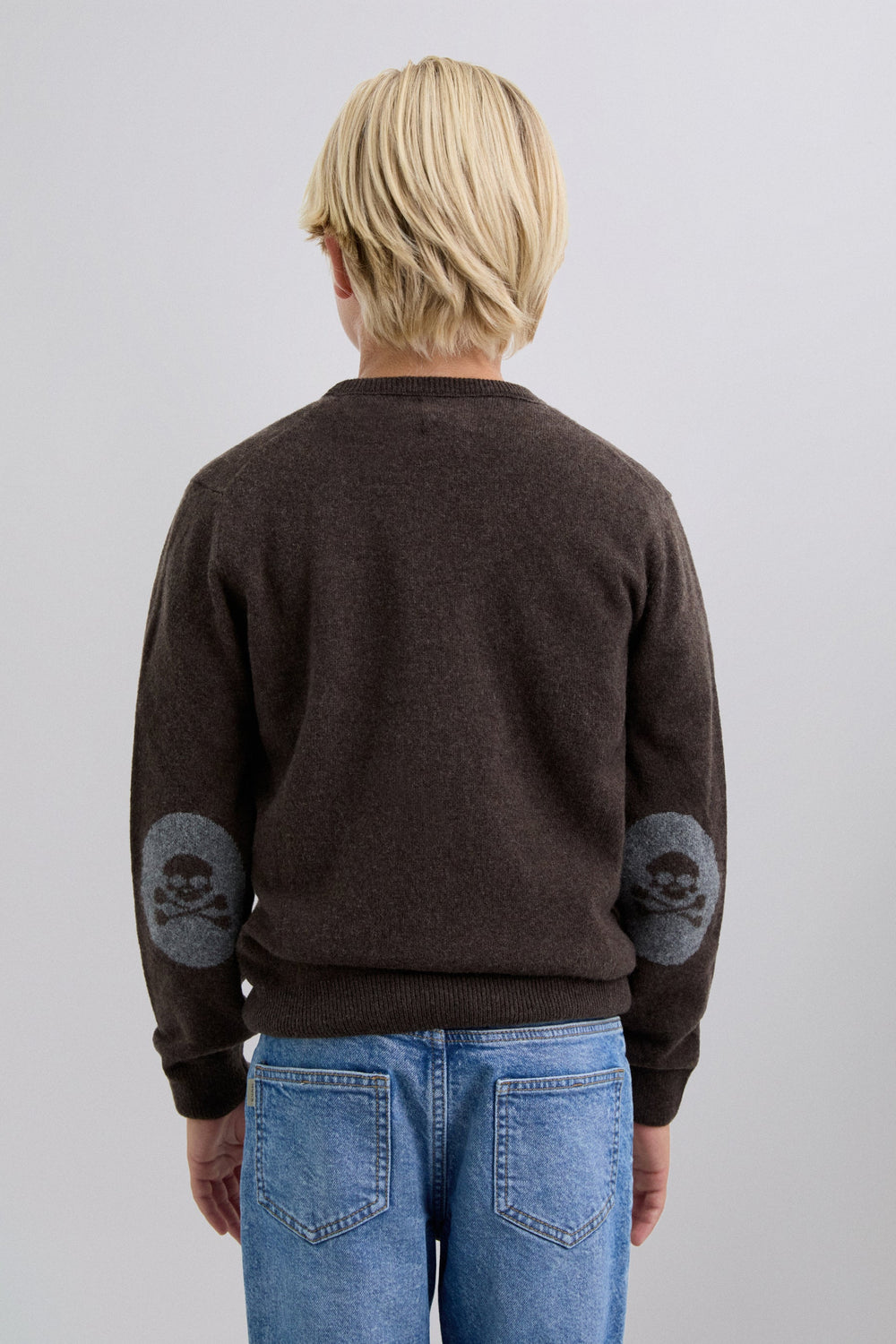 Sweater made of wool and polyamide blend. Regular fit. Round neck. Long sleeves. Contrast embroidered skull detail. Ribbed trim. Skull patch detail on the elbow pads.