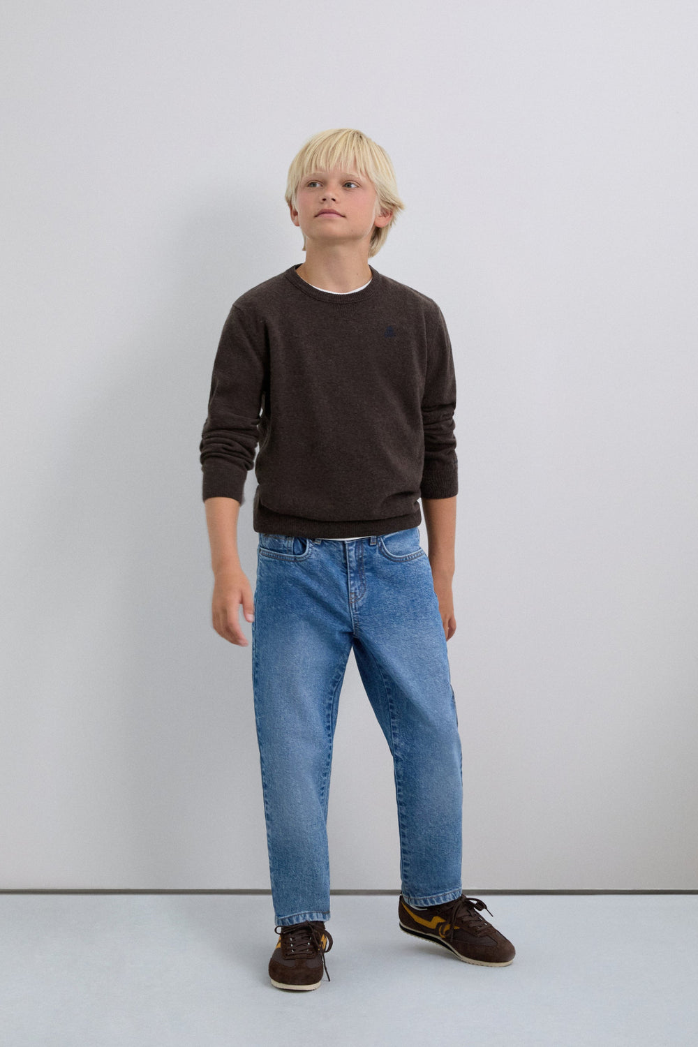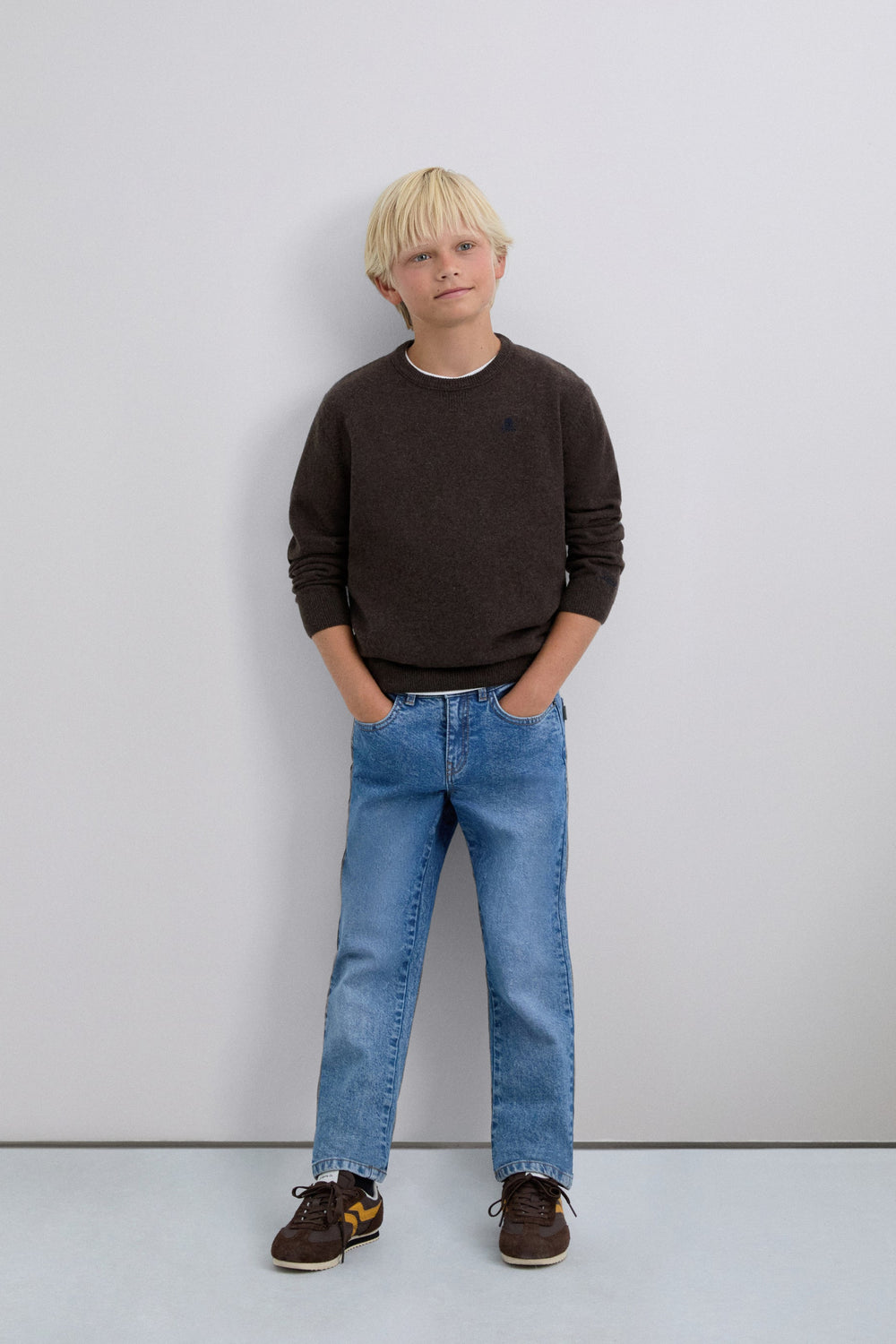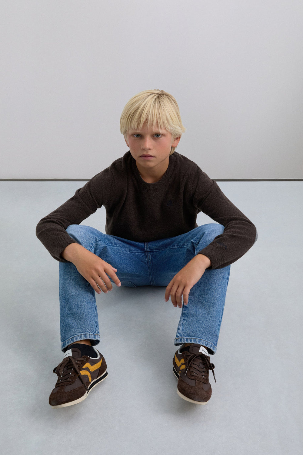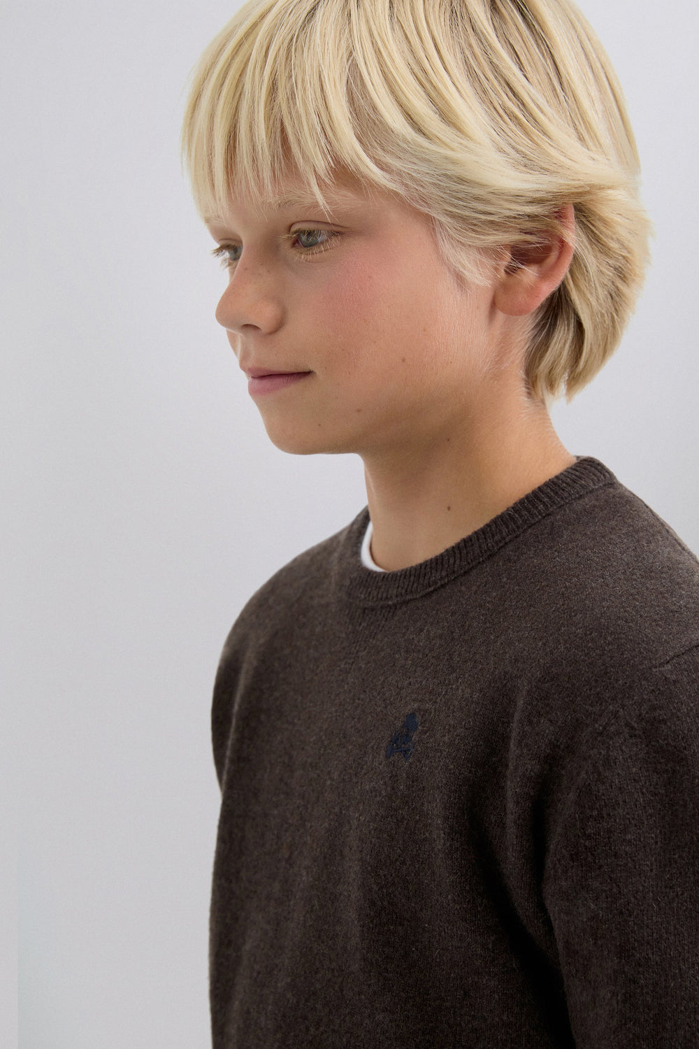 Sweater made of wool and polyamide blend. Regular fit. Round neck. Long sleeves. Contrast embroidered skull detail. Ribbed trim. Skull patch detail on the elbow pads.