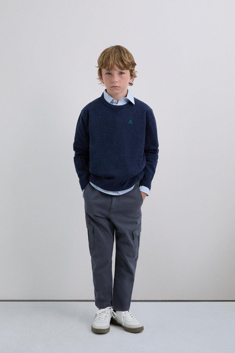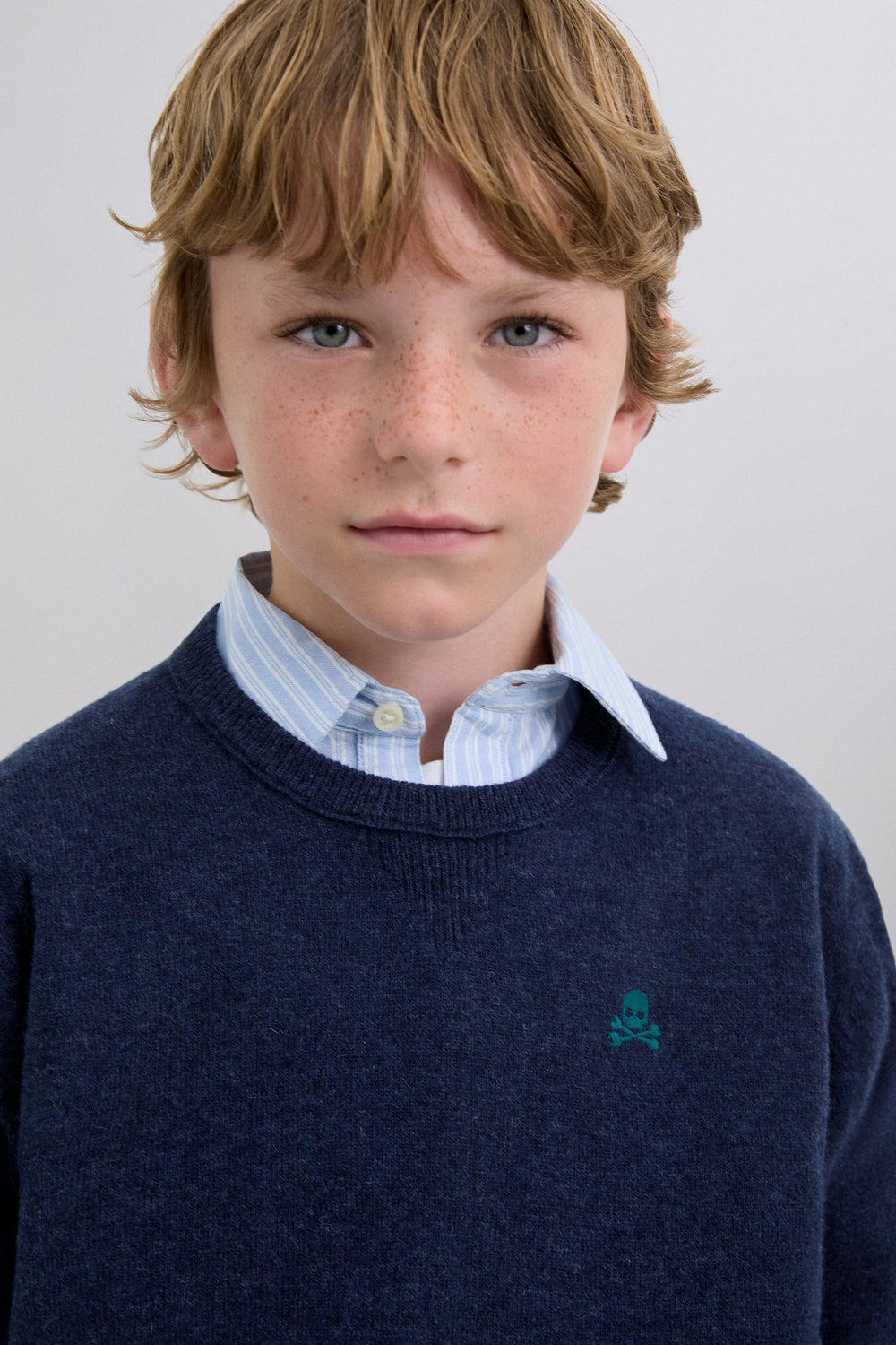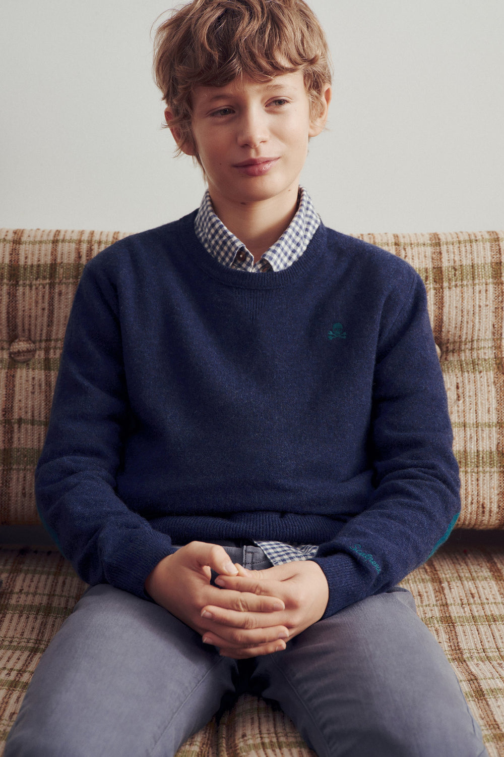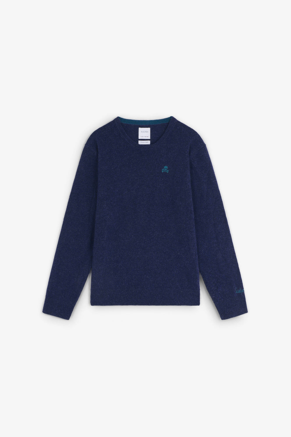 Sweater made of wool and polyamide blend. Regular fit. Round neck. Long sleeves. Contrast embroidered skull detail. Ribbed trim. Contrast skull detail on the elbow pads.