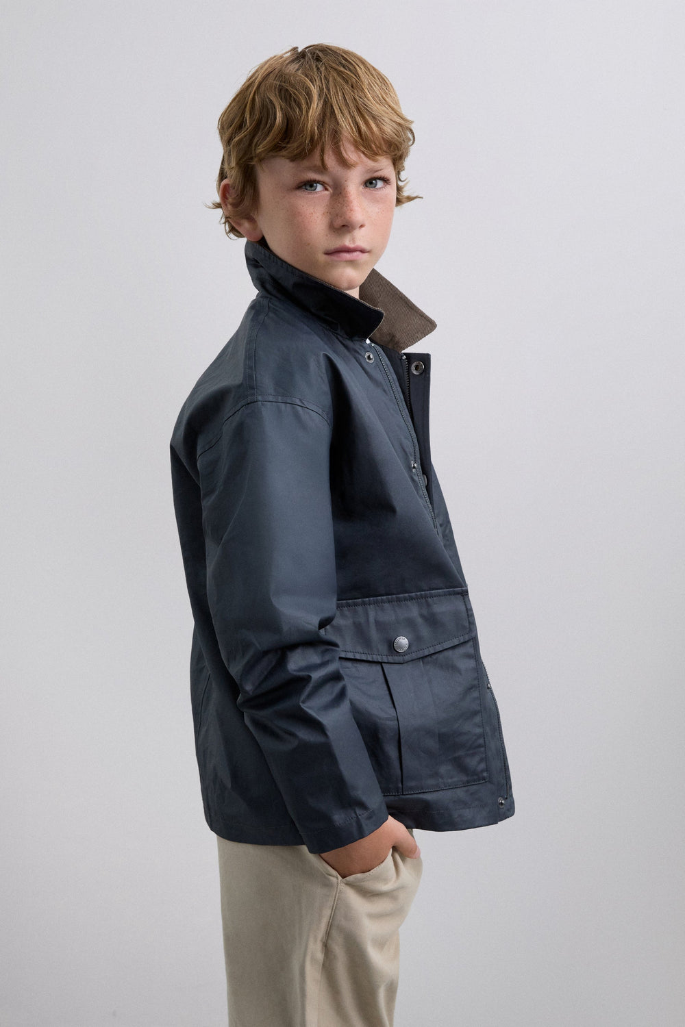 Jacket made of a technical fabric. Contrast shirt collar. Regular Fit. Button fastening. Front button-up pockets. Long sleeves.