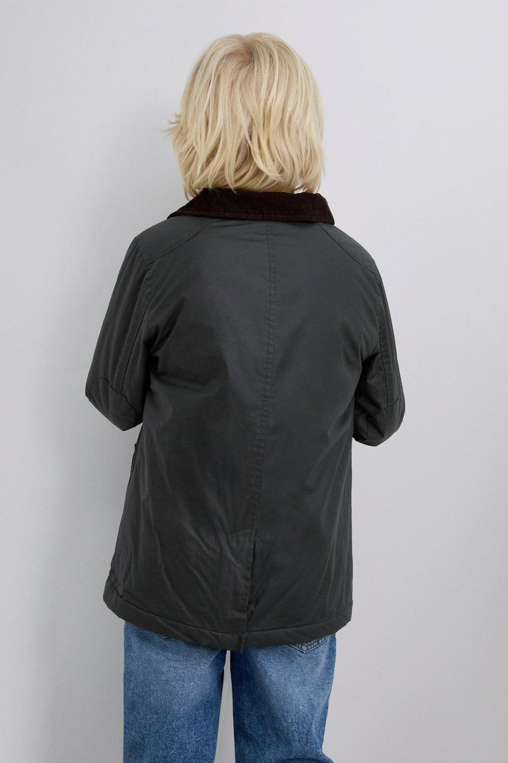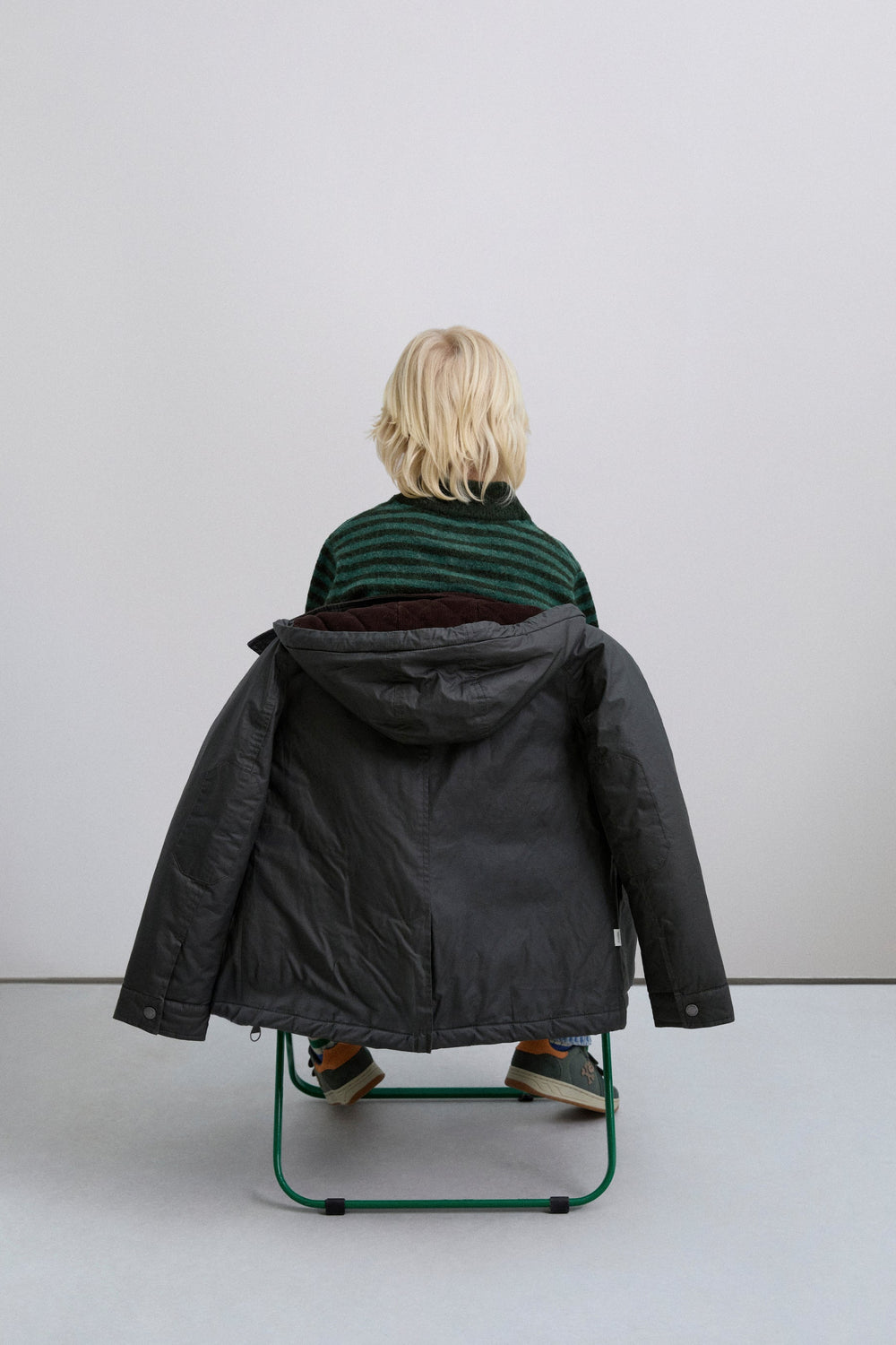 Parka made of 100% BCI cotton with a waxed effect. Regular fit, zip fastening and a detachable adjustable hood. Long sleeves and pockets with snap buttons and zip fastening. Corduroy lining.