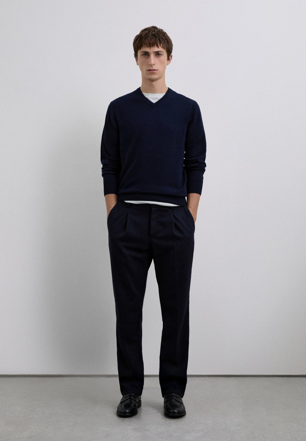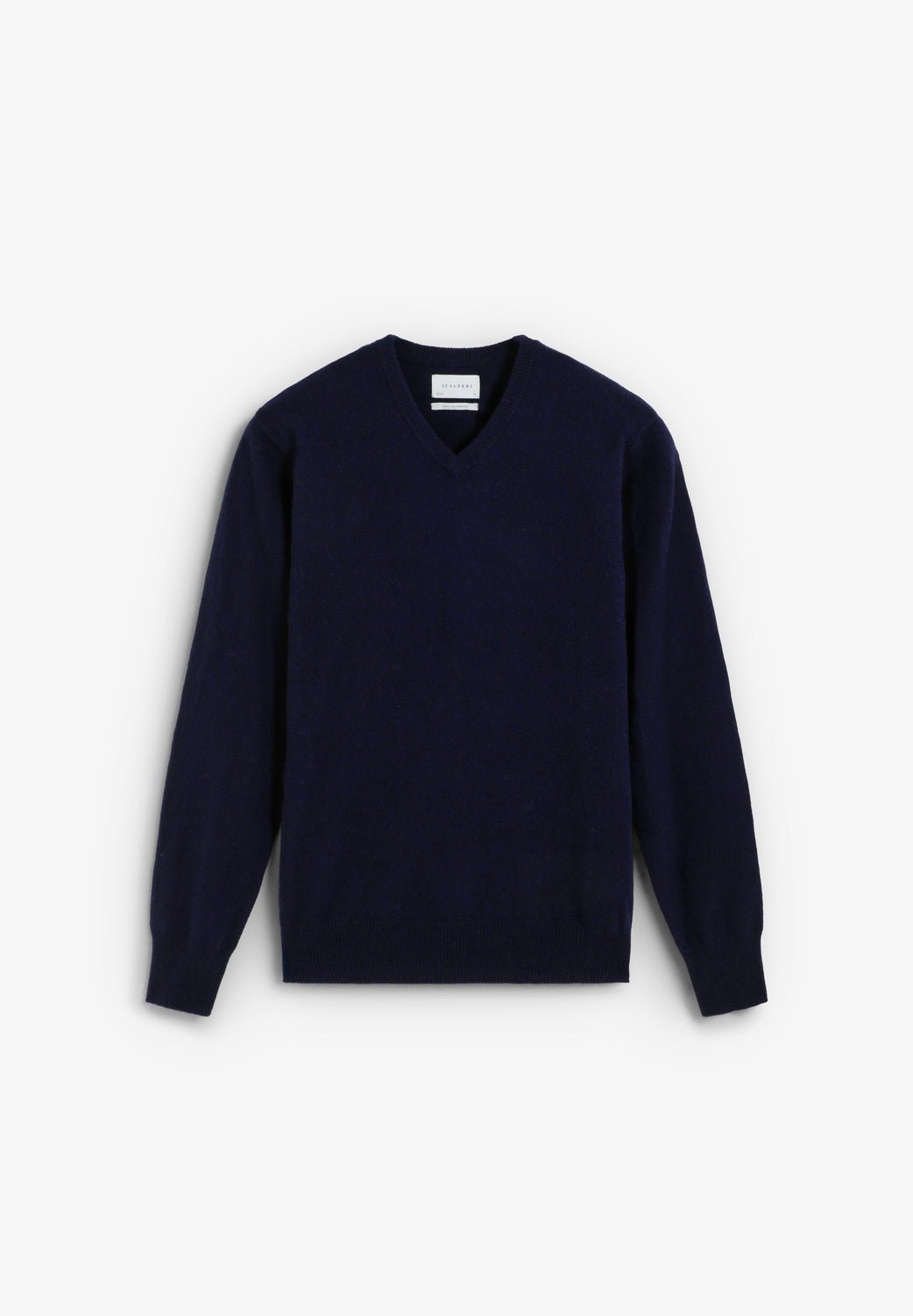 Jersey confeccionado en cachemira 100%. Corte Regular Fit. Cuello de pico. Manga larga.