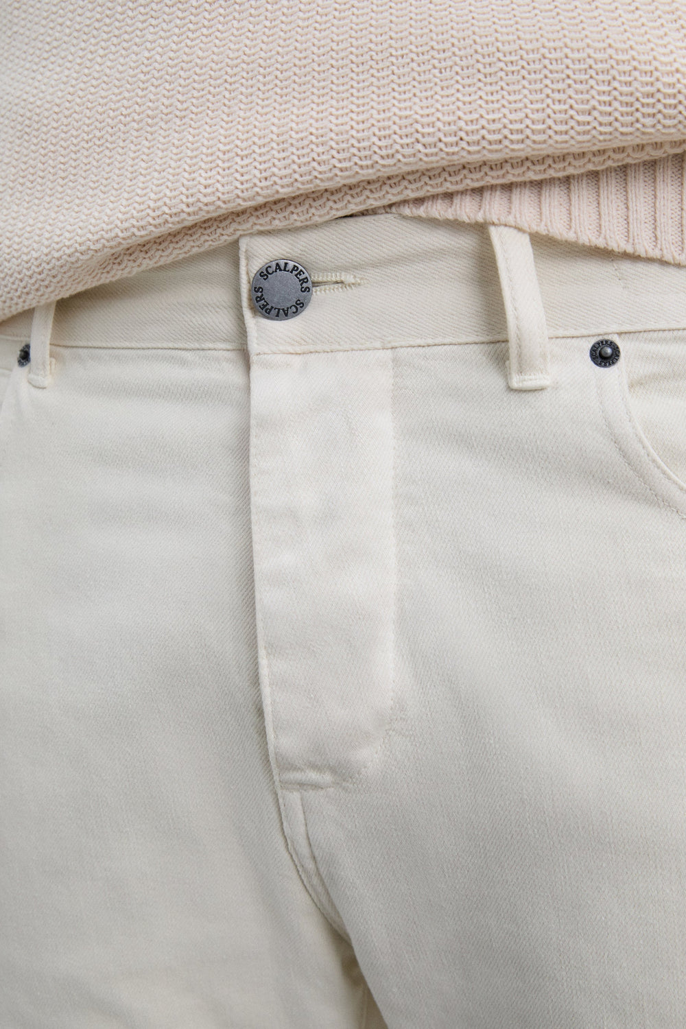 Straight trousers made of 100% cotton. Front and back pockets. Button and zip fastening. Belt loops at the waist. Logo label details on the belt and pocket.